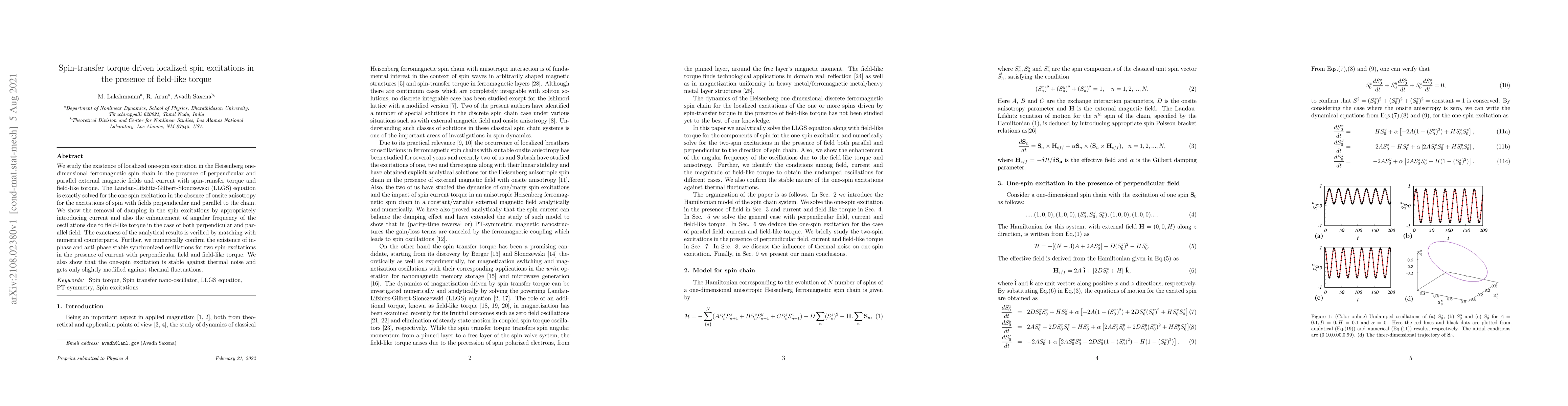 The paper presents analytical solutions for one-spin excitations with field-like torque and validates them numerically, extending the study to two-spin excitations.