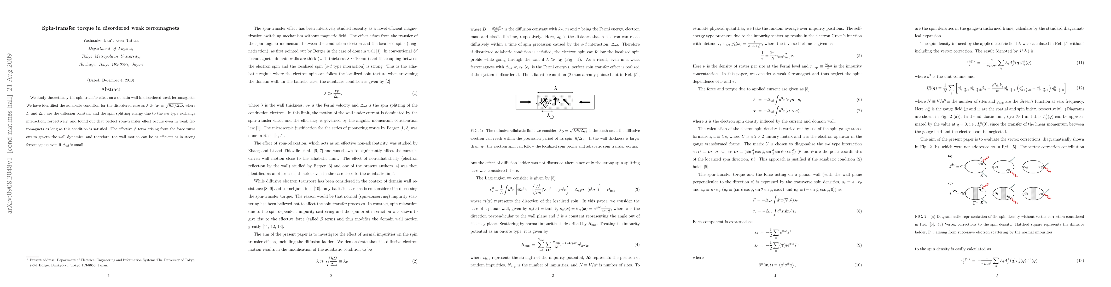 This paper theoretically investigates the spin-transfer torque effect on a domain wall in disordered weak ferromagnets, identifying an adiabatic condition for effective spin-transfer dynamics. The study finds that perfect spin-transfer effects can occur if the condition $\lambda \gg \lambda_{\rm D}$ is met, where $\lambda_{\rm D}$ is defined by the diffusion constant and spin splitting energy.