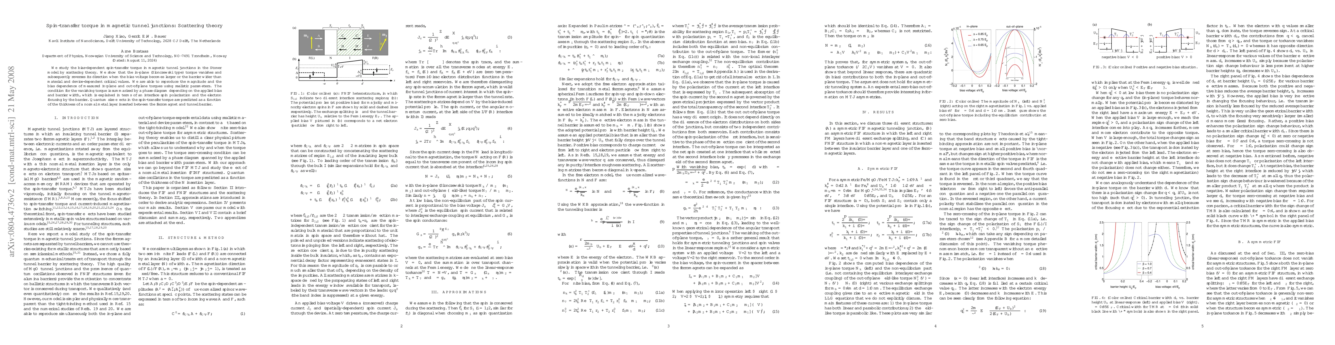 This research investigates spin-transfer torque in magnetic tunnel junctions using scattering theory. It reveals that the in-plane torque vanishes and reverses direction under certain bias and barrier conditions, explained by interface spin polarization and electron focusing. Quantum size effects are also predicted based on the thickness of a normal metal layer.