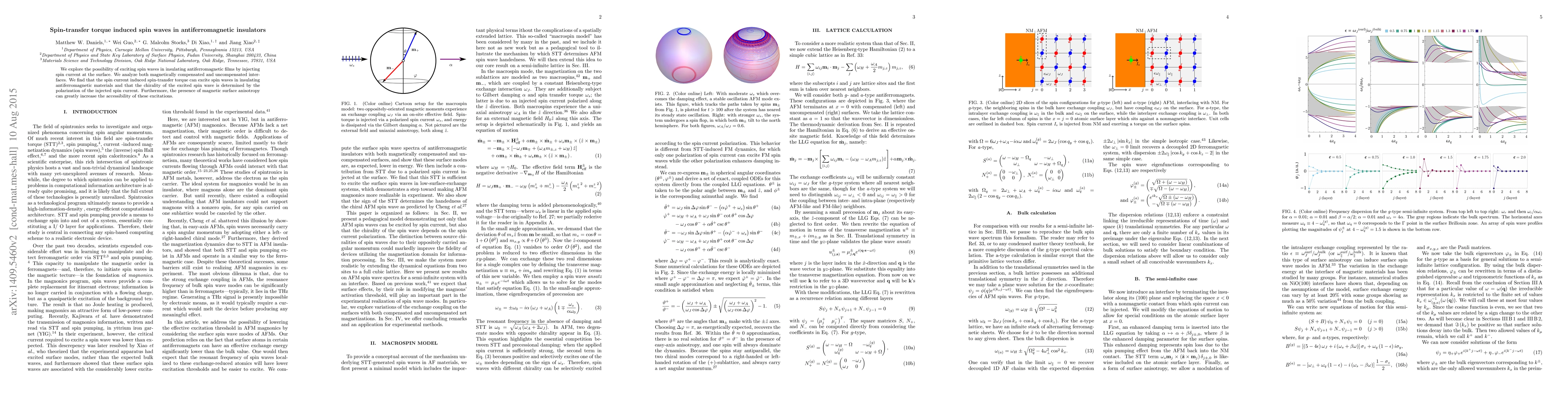 This paper investigates the excitation of spin waves in antiferromagnetic insulators via spin current injection, revealing that spin-transfer torque can induce spin waves whose chirality depends on the injected spin current's polarization. The study also highlights that magnetic surface anisotropy significantly enhances the feasibility of these spin wave excitations.