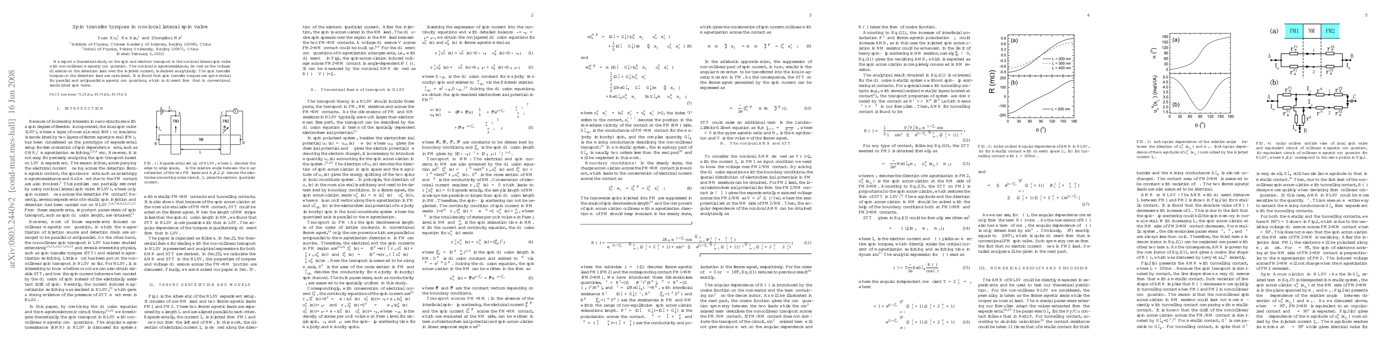 This study theoretically investigates spin and electron transport in a nonlocal lateral spin valve with a non-collinear magnetic configuration, deriving analytical expressions for nonlocal magnetoresistance and finding symmetrical spin transfer torques for parallel and antiparallel configurations, unlike conventional spin valves.