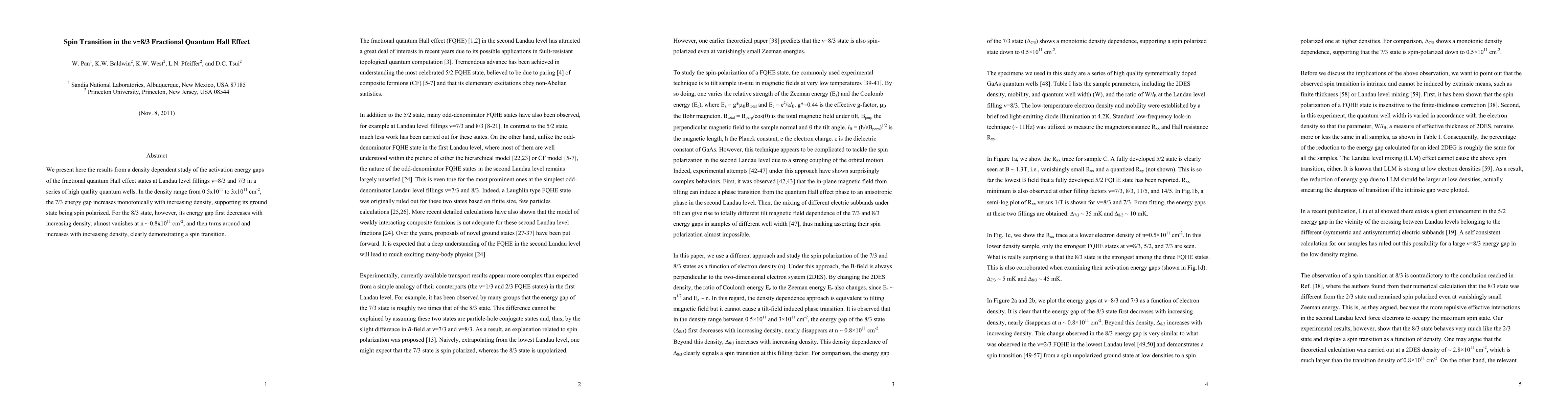 This study investigates the spin transition behavior in fractional quantum Hall effect states at fillings ν=8/3 and 7/3. The 7/3 state's energy gap increases with density, indicating a spin-polarized ground state, while the 8/3 state's gap decreases, vanishes, and then increases, revealing a density-driven spin transition.