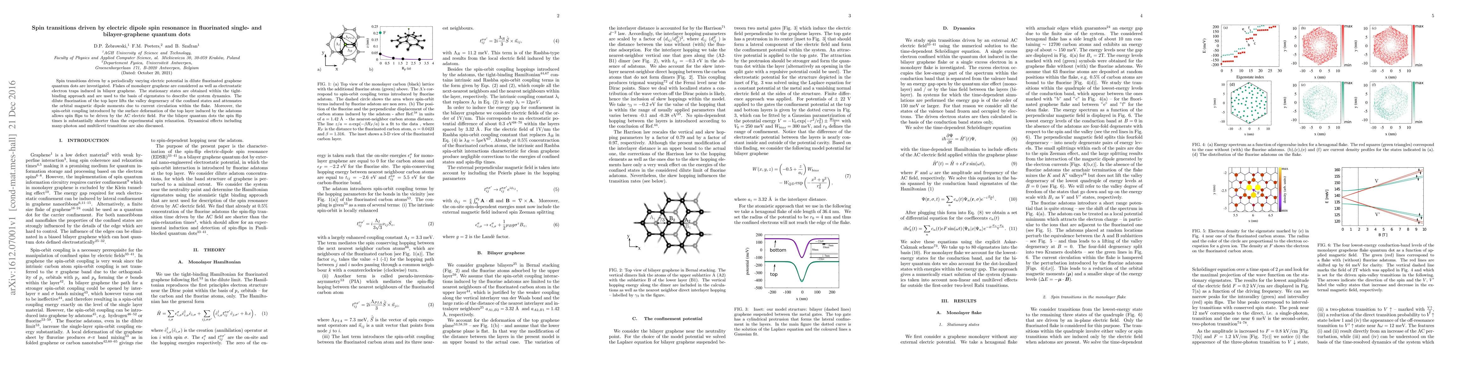 This research investigates spin transitions in fluorinated graphene quantum dots driven by an AC electric field, employing tight-binding models for dynamics. Dilute fluorination lifts valley degeneracy and enables spin flips via induced spin-orbit coupling, with bilayer dots showing faster spin flip times than monolayers.