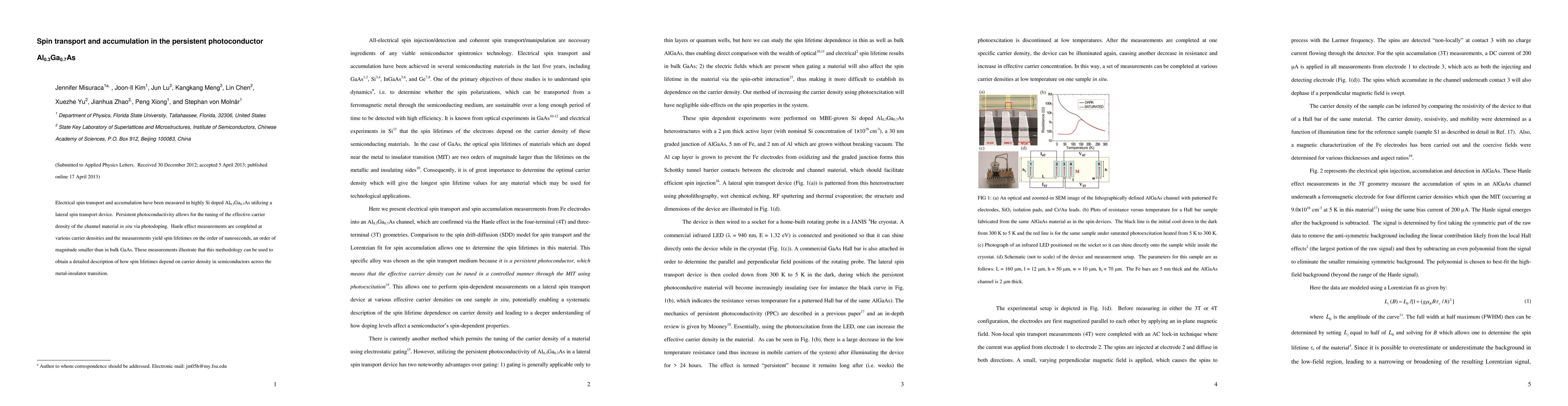 Electrical spin transport and accumulation have been measured in highly Si doped Al0.3Ga0.7As utilizing a lateral spin transport device. Persistent photoconductivity allows for the tuning of the effective carrier density of the channel material in situ via photodoping. Hanle effect measurements are completed at various carrier densities and the measurements yield spin lifetimes on the order of nanoseconds, an order of magnitude smaller than in bulk GaAs. These measurements illustrate that this methodology can be used to obtain a detailed description of how spin lifetimes depend on carrier density in semiconductors across the metal-insulator transition.