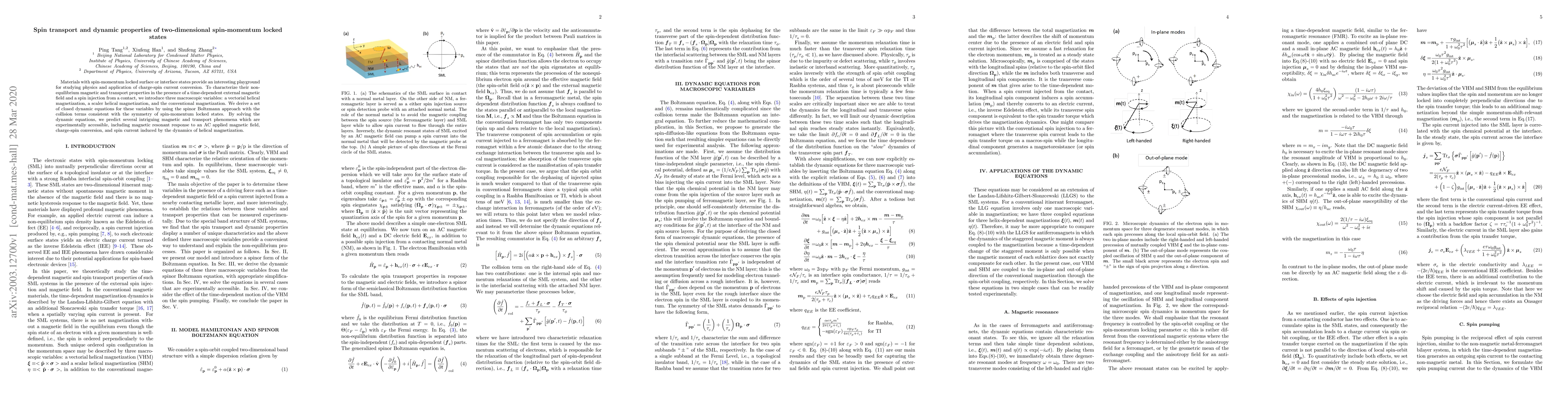 This paper investigates the dynamic properties and spin transport of materials with spin-momentum locked states, using a spinor Boltzmann approach to derive equations for helical magnetizations. It predicts phenomena like magnetic resonance, charge-spin conversion, and spin current dynamics under external magnetic fields.