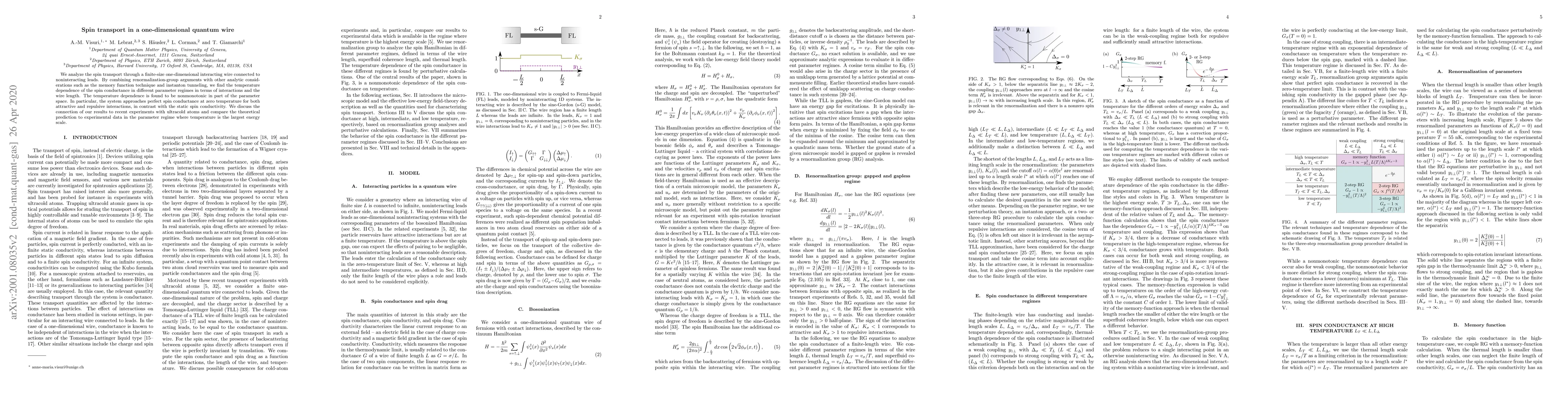 This paper investigates spin transport in a one-dimensional quantum wire with interactions, revealing a nonmonotonic temperature dependence of spin conductance. It finds that perfect spin conductance is achievable at zero temperature, contrasting with static spin conductivity, and correlates theoretical findings with recent experiments using ultracold atoms.