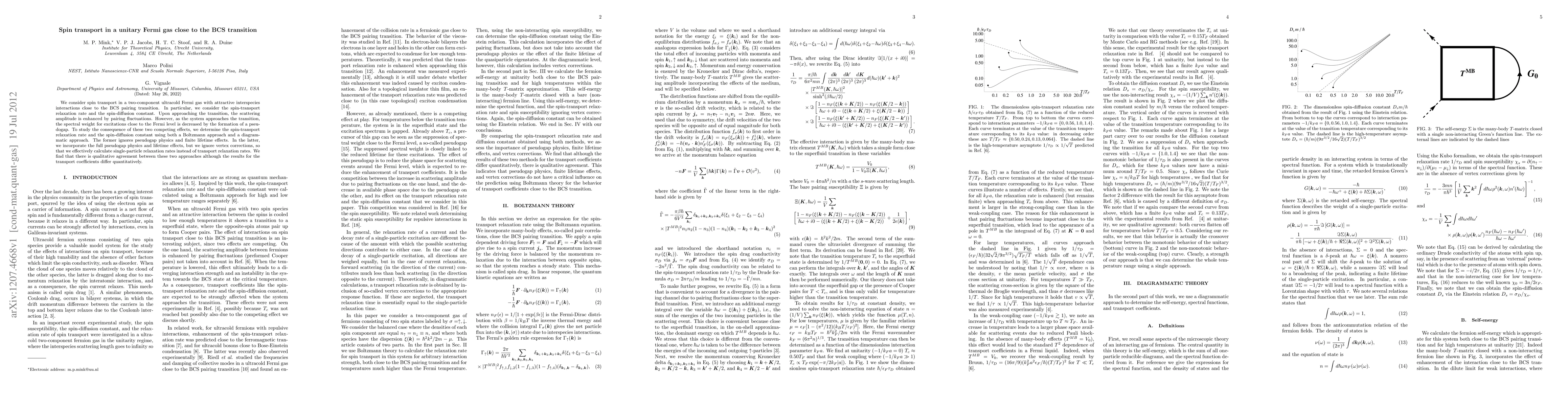 We consider spin transport in a two-component ultracold Fermi gas with attractive interspecies interactions close to the BCS pairing transition. In particular, we consider the spin-transport relaxation rate and the spin-diffusion constant. Upon approaching the transition, the scattering amplitude is enhanced by pairing fluctuations. However, as the system approaches the transition, the spectral weight for excitations close to the Fermi level is decreased by the formation of a pseudogap. To study the consequence of these two competing effects, we determine the spin-transport relaxation rate and the spin-diffusion constant using both a Boltzmann approach and a diagrammatic approach. The former ignores pseudogap physics and finite lifetime effects. In the latter, we incorporate the full pseudogap physics and lifetime effects, but we ignore vertex corrections, so that we effectively calculate single-particle relaxation rates instead of transport relaxation rates. We find that there is qualitative agreement between these two approaches although the results for the transport coefficients differ quantitatively.