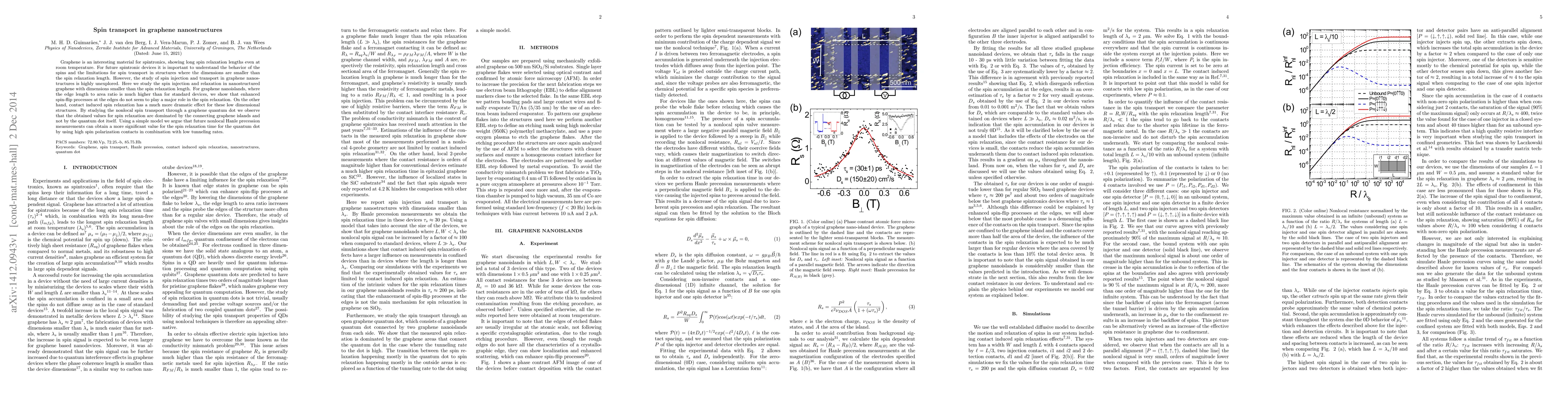 This paper investigates spin injection and transport in graphene nanostructures, finding that contact-induced spin relaxation is more significant than edge-related spin-flip processes. The study suggests that future nonlocal Hanle precession measurements with high spin polarization contacts and low tunneling rates could yield more accurate spin relaxation times for graphene quantum dots.