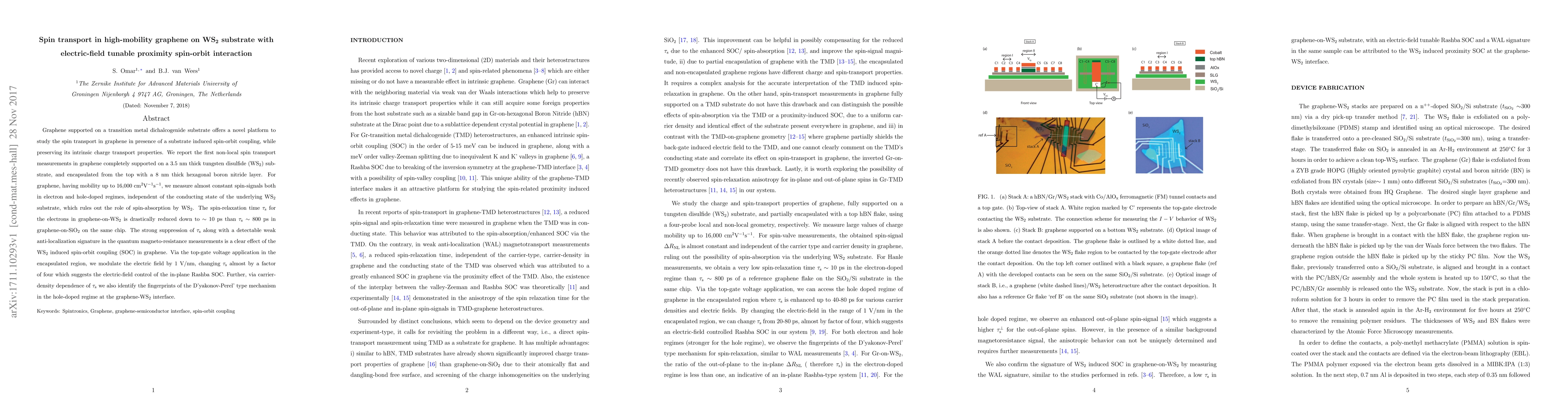 This paper investigates spin transport in high-mobility graphene on a WS$_2$ substrate, revealing strong suppression of spin-relaxation time due to substrate-induced spin-orbit coupling. Electric field modulation via a top gate further tunes the proximity spin-orbit interaction, demonstrating the potential for electric-field control of spin dynamics in graphene.