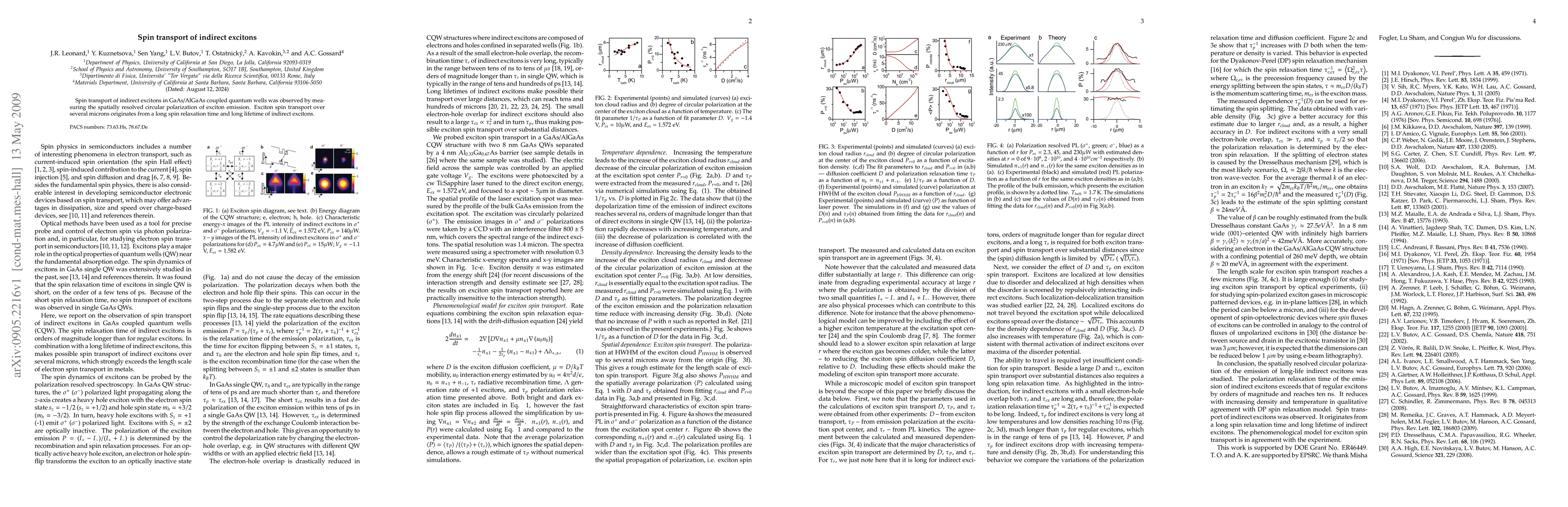 The paper presents a phenomenological model for exciton spin transport, combining exciton spin relaxation equations with a drift-diffusion equation, which agrees with experimental data.