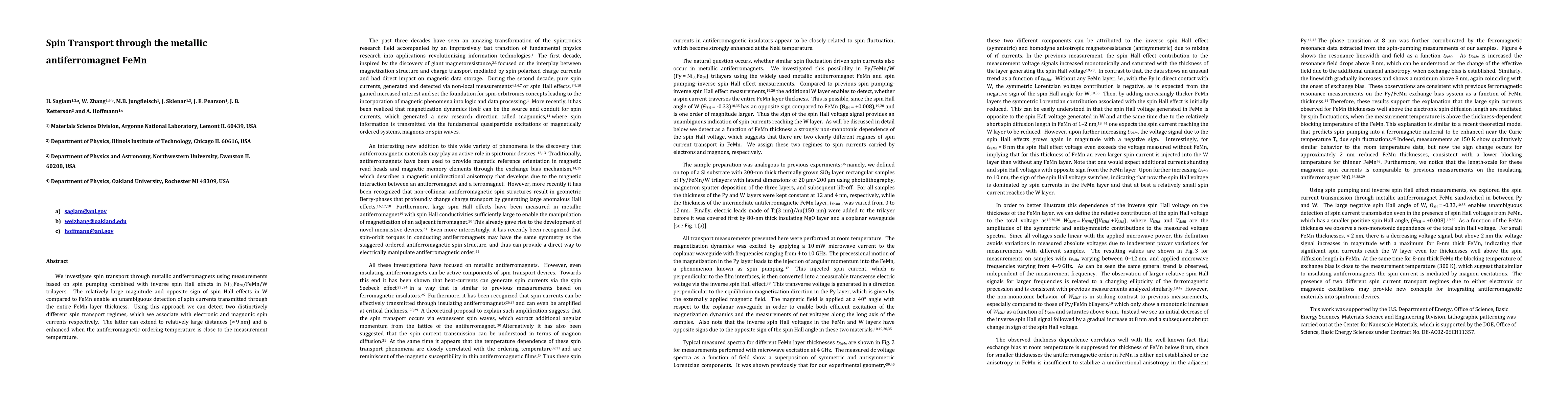 We investigate spin transport through metallic antiferromagnets using measurements based on spin pumping combined with inverse spin Hall effects in Ni80Fe20/FeMn/W trilayers. The relatively large magnitude and opposite sign of spin Hall effects in W compared to FeMn enable an unambiguous detection of spin currents transmitted through the entire FeMn layer thickness. Using this approach we can detect two distinctively different spin transport regimes, which we associate with electronic and magnonic spin currents respectively. The latter can extend to relatively large distances (up to 9 nm) and is enhanced when the antiferromagnetic ordering temperature is close to the measurement temperature.