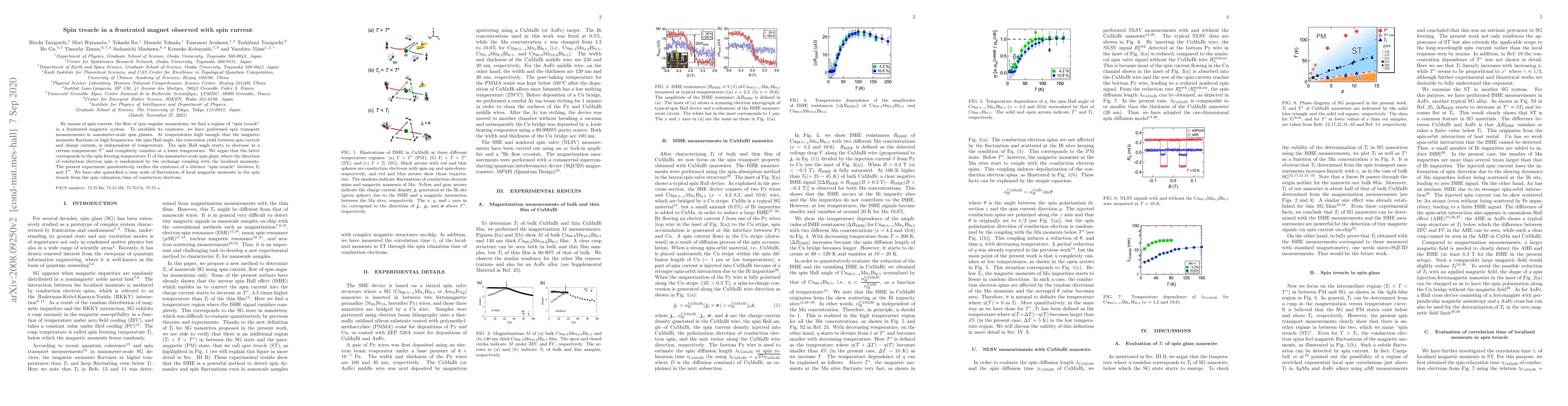 By means of spin current, the flow of spin angular momentum, we find a regime of "spin treacle" in a frustrated magnetic system. To establish its existence, we have performed spin transport measurements in nanometer-scale spin glasses. At temperatures high enough that the magnetic moments fluctuate at high frequencies, the spin Hall angle, the conversion yield between spin current and charge current, is independent of temperature. The spin Hall angle starts to decrease at a certain temperature $T^{*}$ and completely vanishes at a lower temperature. We argue that the latter corresponds to the spin freezing temperature $T_{\rm f}$ of the nanometer-scale spin glass, where the direction of conduction electron spin is randomized by the exchange coupling with the localized moments. The present experiment \textit{quantitatively} verifies the existence of a distinct "spin treacle" between $T_{\rm f}$ and $T^{*}$. We have also quantified a time scale of fluctuation of local magnetic moments in the spin treacle from the spin relaxation time of conduction electrons.