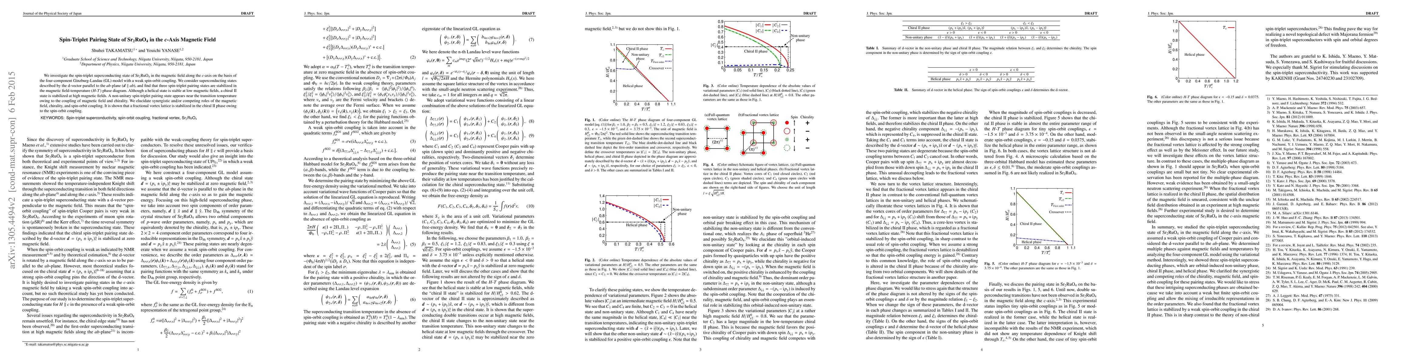 This paper investigates the spin-triplet superconductivity in Sr2RuO4 under a c-axis magnetic field using a four-component Ginzburg-Landau model, revealing three spin-triplet pairing states. A chiral II state emerges at high fields, while a helical state is stable at low fields, highlighting the interplay between magnetic field, chirality, and spin-orbit coupling.