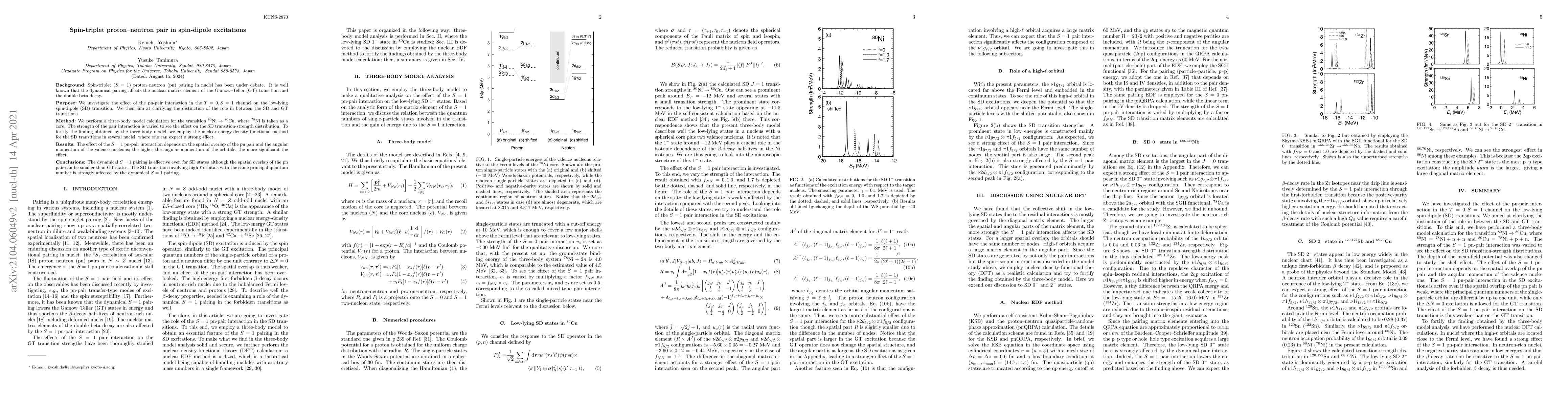 Background: Spin-triplet ($S=1$) proton-neutron (pn) pairing in nuclei has been under debate. It is well known that the dynamical pairing affects the nuclear matrix element of the Gamow-Teller (GT) transition and the double beta decay. Purpose: We investigate the effect of the pn-pair interaction in the $T=0, S=1$ channel on the low-lying spin-dipole (SD) transition. We then aim at clarifying the distinction of the role in between the SD and GT transitions. Method: We perform a three-body model calculation for the transition ${}^{80}\mathrm{Ni}\to{}^{80}\mathrm{Cu}$, where ${}^{78}\mathrm{Ni}$ is taken as a core. The strength of the pair interaction is varied to see the effect on the SD transition-strength distribution. To fortify the finding obtained by the three-body model, we employ the nuclear energy-density functional method for the SD transitions in several nuclei, where one can expect a strong effect. Results: The effect of the $S=1$ pn-pair interaction depends on the spatial overlap of the pn pair and the angular momentum of the valence nucleons; the higher the angular momentum of the orbitals, the more significant the effect. Conclusions: The dynamical $S=1$ pairing is effective even for SD states although the spatial overlap of the pn pair can be smaller than GT states. The SD transition involving high-$\ell$ orbitals with the same principal quantum number is strongly affected by the dynamical $S=1$ pairing.
