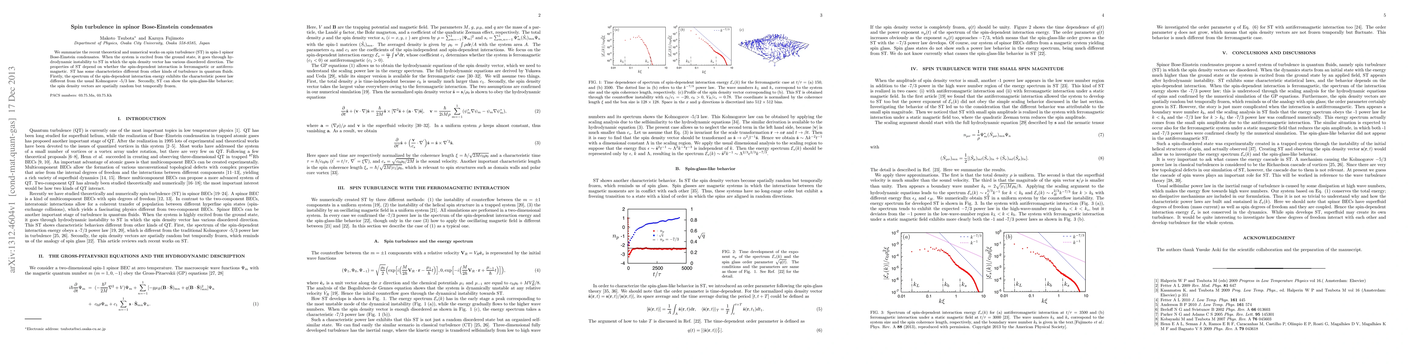 This paper reviews theoretical and numerical studies on spin turbulence in spin-1 spinor Bose-Einstein condensates, revealing that it exhibits unique characteristics such as a power law spectrum differing from the Kolmogorov -5/3 law and spin-glass-like behavior with spatially random but temporally frozen spin density vectors.