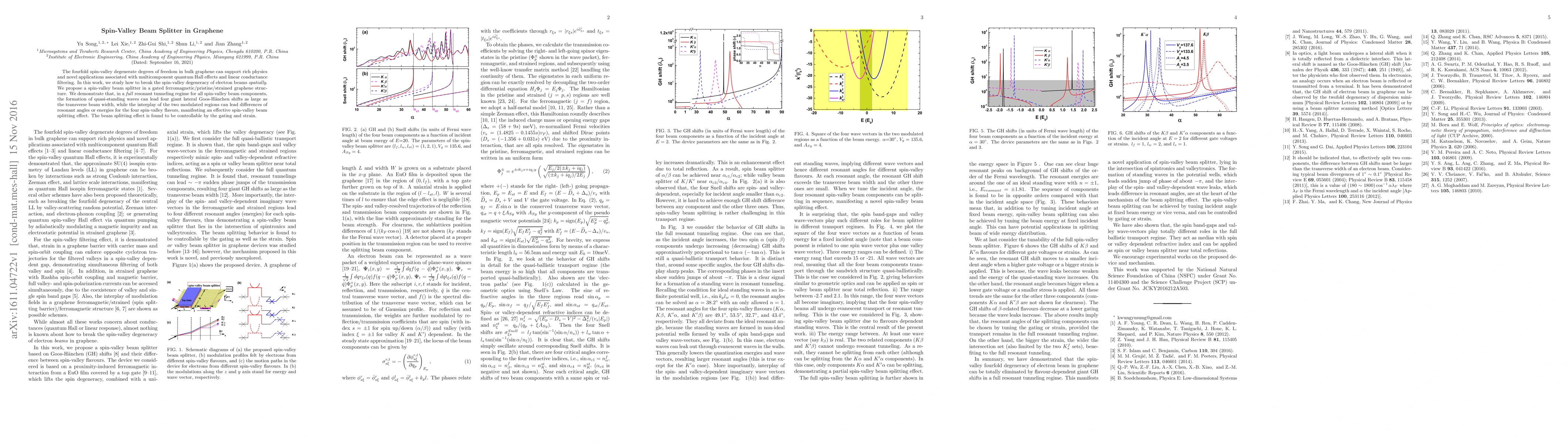 This research proposes a spin-valley beam splitter in gated ferromagnetic/pristine/strained graphene that can spatially separate electron beams based on their spin-valley states. The study demonstrates the formation of quasi-standing waves resulting in significant lateral Goos-Hänchen shifts, effectively splitting the spin-valley components, a controllability achieved via gating and strain modulation.