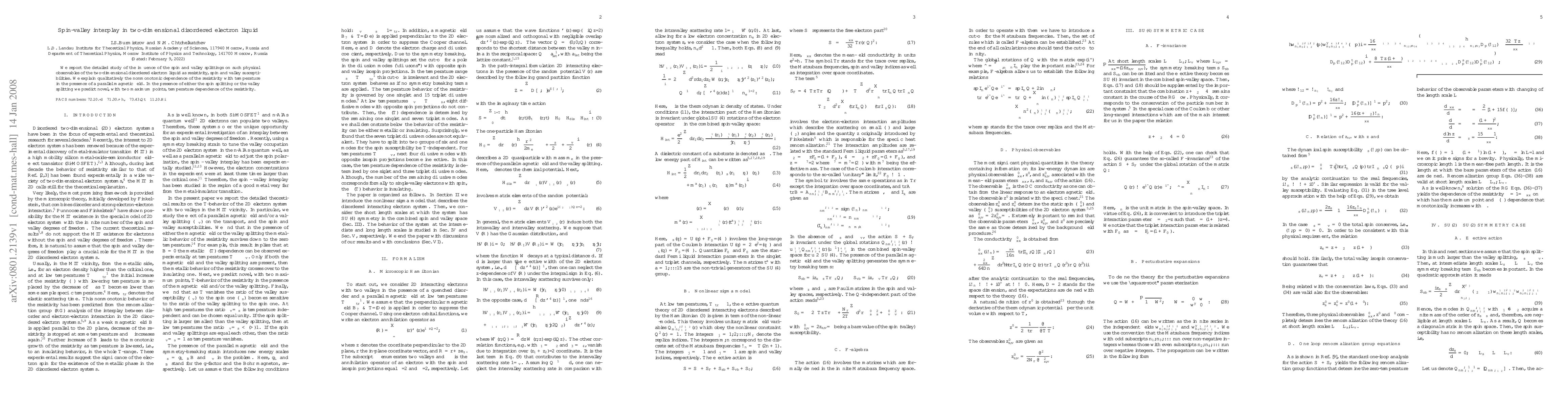 We report the detailed study of the influence of the spin and valley splittings on such physical observables of the two-dimensional disordered electron liquid as resistivity, spin and valley susceptibilities. We explain qualitatively the nonmonotonic dependence of the resistivity with temperature in the presence of a parallel magnetic field. In the presence of either the spin splitting or the valley splitting we predict novel, with two maximum points, temperature dependence of the resistivity.