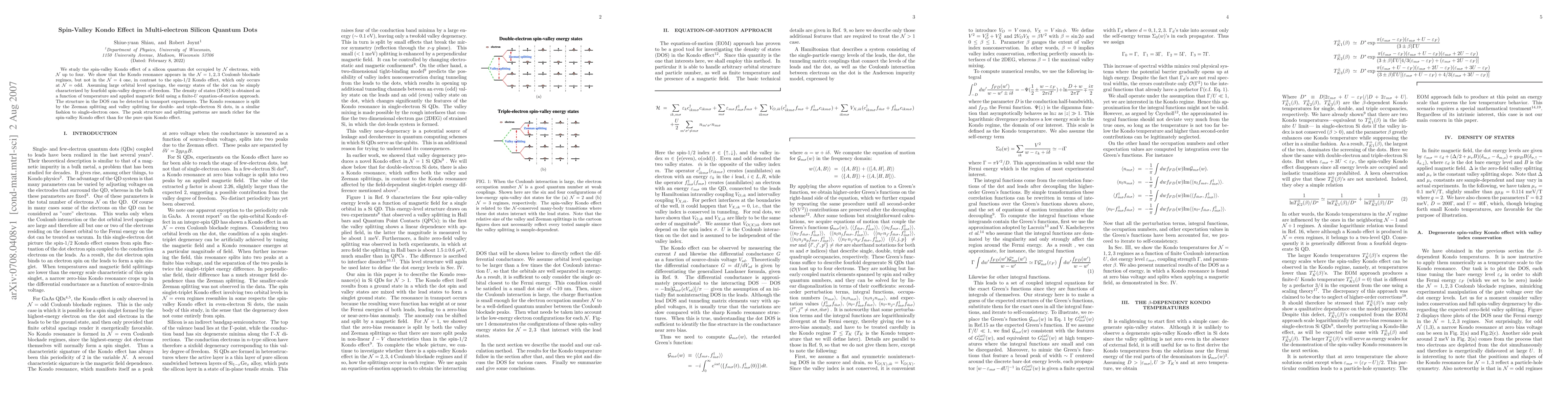 The paper investigates the spin-valley Kondo effect in silicon quantum dots with up to four electrons, revealing that the effect manifests in the Coulomb blockade regimes for $N=1$ to $3$ but not for $N=4$. The density of states shows distinct peak structures influenced by Zeeman and valley splitting, offering richer splitting patterns compared to the pure spin Kondo effect.