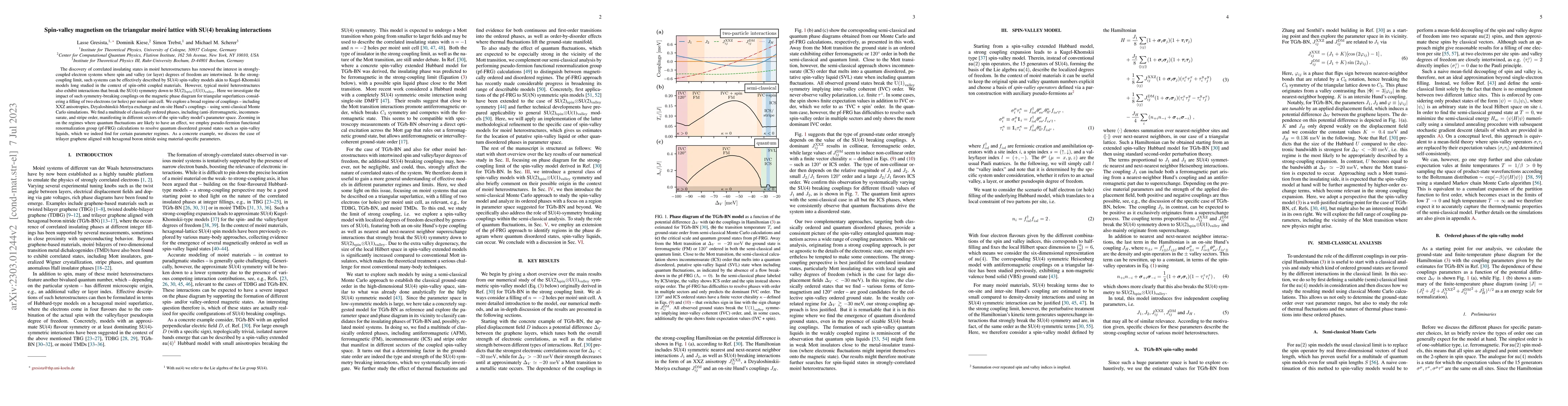 This paper investigates spin-valley magnetism in triangular moiré lattices with SU(4) symmetry-breaking interactions, revealing a variety of magnetic phases through semi-classical simulations and pseudo-fermion functional renormalization group calculations, including spin-valley liquids in specific parameter regimes.