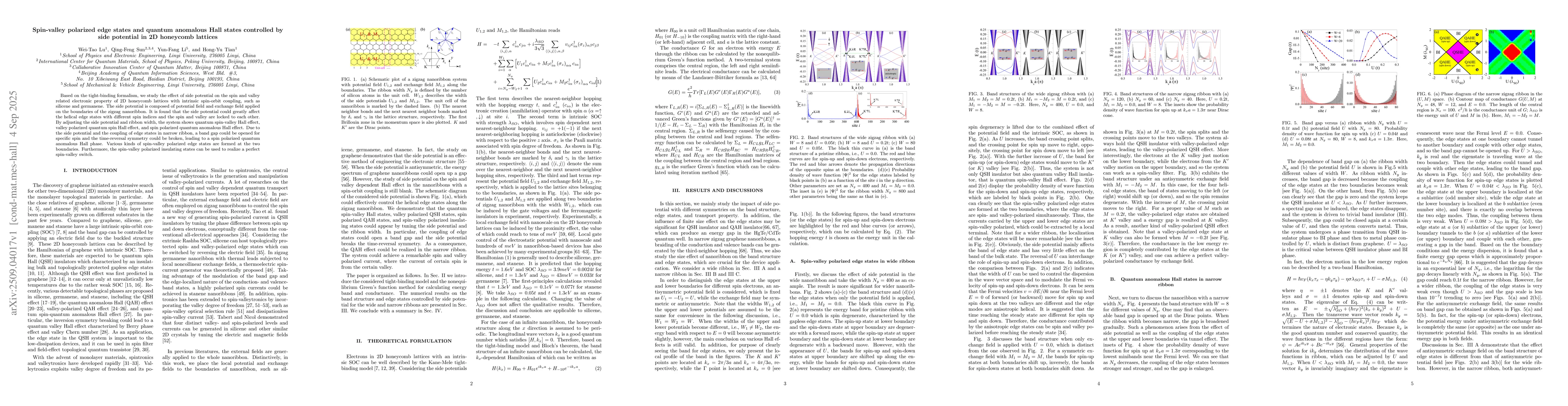 Based on the tight-binding formalism, we study the effect of side potential on the spin and valley related electronic property of $2$D honeycomb lattices with intrinsic spin-orbit coupling, such as silicene and germanene. The side potential is composed of potential field and exchange field applied on the boundaries of the zigzag nanoribbon. It is found that the side potential could greatly affect the helical edge states with different spin indices and the spin and valley are locked to each other. By adjusting the side potential and ribbon width, the system shows quantum spin-valley Hall effect, valley polarized quantum spin Hall effect, and spin polarized quantum anomalous Hall effect. Due to the side potential and the coupling of edge states in narrow ribbon, a band gap could be opened for specific spin and the time-reversal symmetry could be broken, leading to a spin polarized quantum anomalous Hall phase. Various kinds of spin-valley polarized edge states are formed at the two boundaries. Furthermore, the spin-valley polarized insulating states can be used to realize a perfect spin-valley switch.