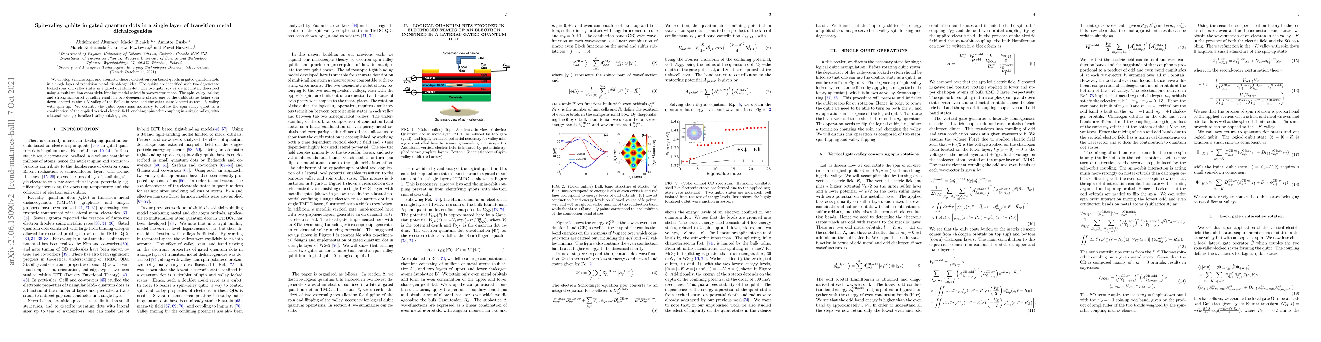 This paper develops a microscopic theory for electron spin-based qubits in gated quantum dots of transition metal dichalcogenides, identifying qubits with spin-valley states. The study employs a multi-million atom tight-binding model to describe the two-qubit states, highlighting the role of spin-valley locking and strong spin-orbit coupling.