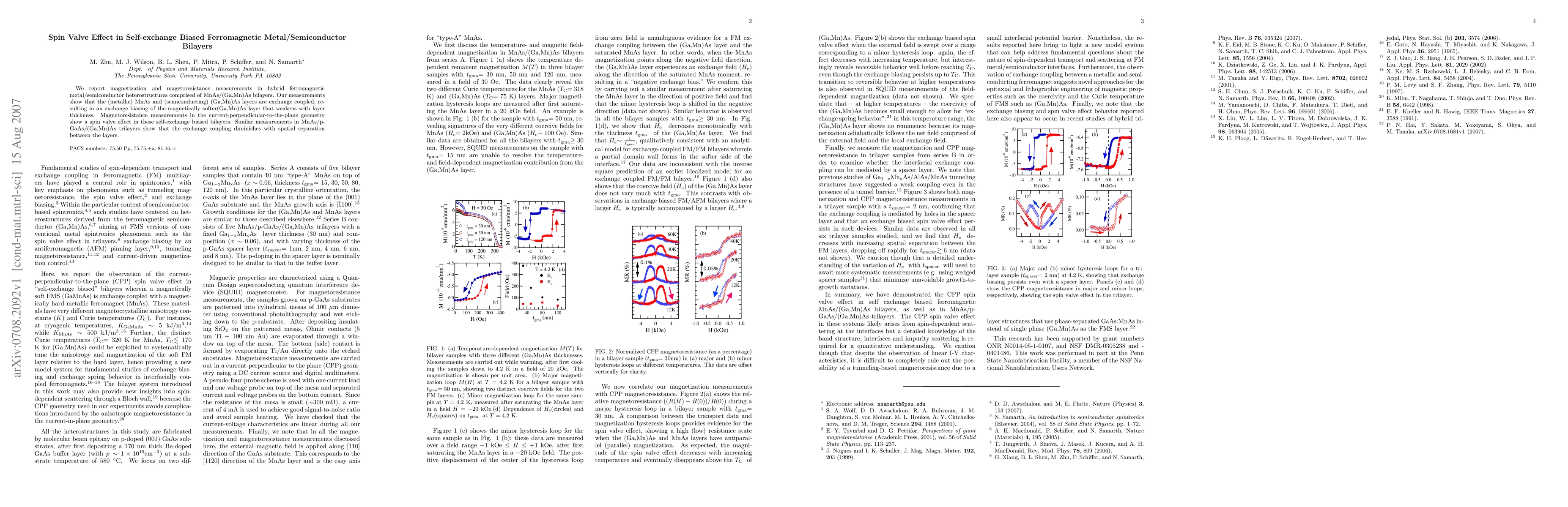We report magnetization and magetoresistance measurements in hybrid ferromagnetic metal/semiconductor heterostructures comprised of MnAs/(Ga,Mn)As bilayers. Our measurements show that the (metallic) MnAs and (semiconducting) (Ga,Mn)As layers are exchange coupled, re- sulting in an exchange biasing of the magnetically softer (Ga,Mn)As layer that weakens with layer thickness. Magnetoresistance measurements in the current-perpendicular-to-the-plane geometry show a spin valve effect in these self-exchange biased bilayers. Similar measurements in MnAs/p- GaAs/(Ga,Mn)As trilayers show that the exchange coupling diminishes with spatial separation between the layers.