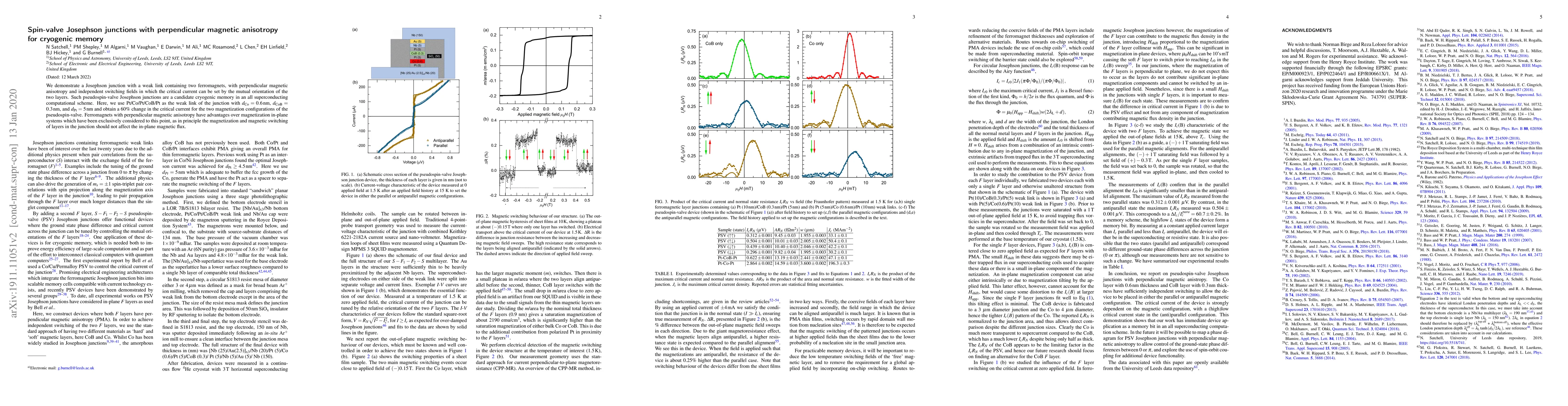 This paper demonstrates a novel Josephson junction with perpendicular magnetic anisotropy, showing a 60% change in critical current based on the orientation of two ferromagnetic layers. This pseudospin-valve design, using Pt/Co/Pt/CoB/Pt, presents a promising cryogenic memory option for superconducting computational systems.