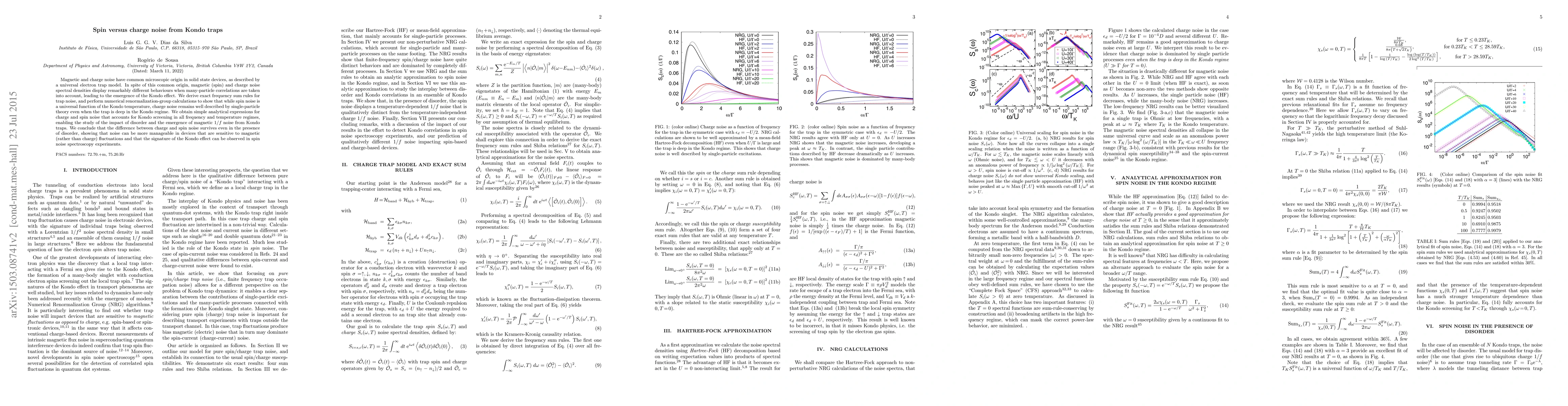 This paper investigates the distinct behaviors of magnetic (spin) and charge noise in solid-state devices, revealing that spin noise follows a universal function of the Kondo temperature, while charge noise adheres to single-particle theory, even in the Kondo regime. The findings suggest that devices sensitive to magnetic fluctuations may exhibit more manageable noise, and the Kondo effect can be detected via spin noise spectroscopy.
