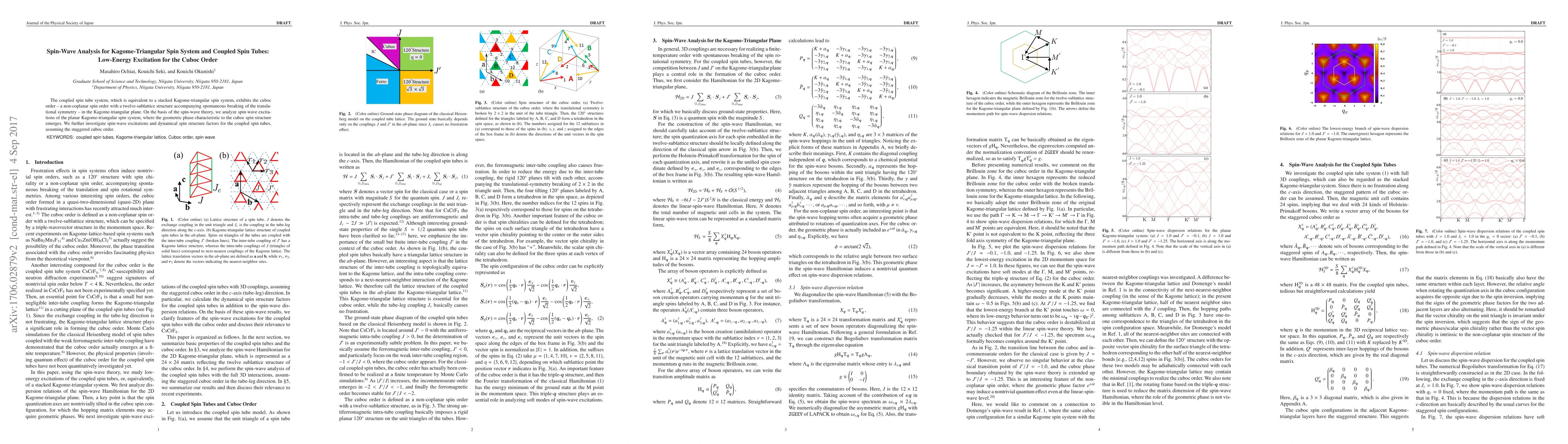 Researchers analyzed spin-wave excitations in a Kagome-triangular spin system with coupled spin tubes, revealing a low-energy excitation that supports the cuboc order, a non-coplanar spin structure.