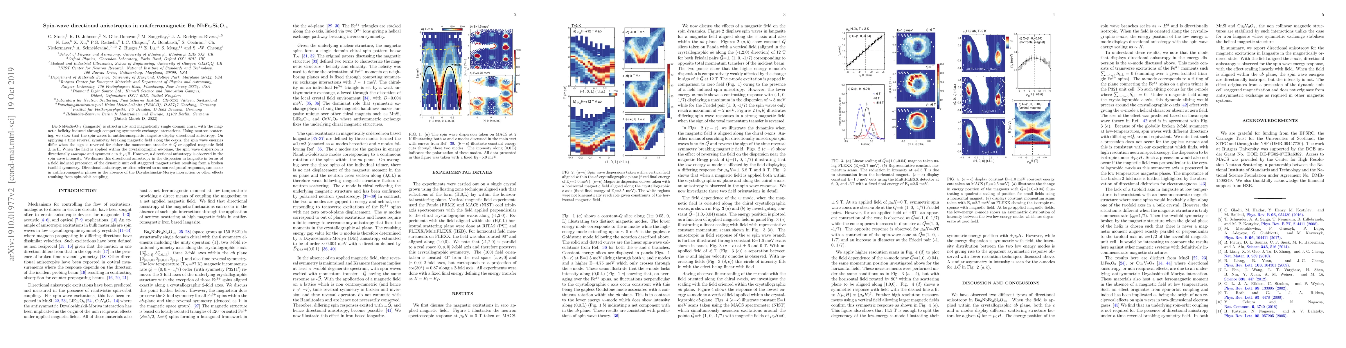 Researchers discovered directional anisotropies in spin-waves of antiferromagnetic langasite Ba$_{3}$NbFe$_{3}$Si$_{2}$O$_{14}$ when applying a magnetic field, indicating a complex behavior not dependent on Dzyaloshinskii-Moriya interaction or spin-orbit coupling.