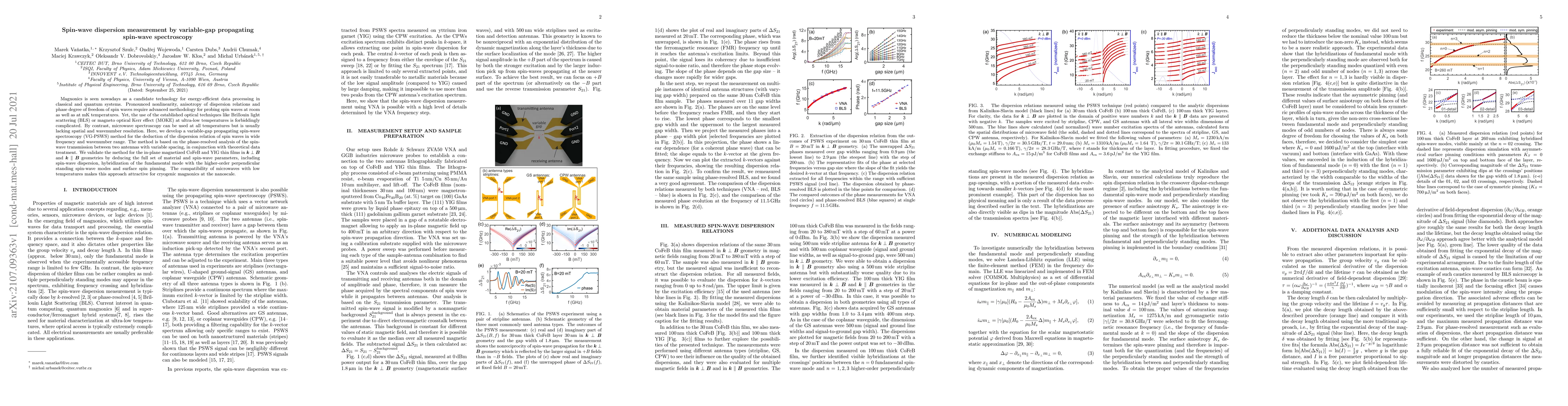 This paper introduces a variable-gap propagating spin-wave spectroscopy (VG-PSWS) method to measure the spin-wave dispersion relation across a wide frequency and wavenumber range. The method leverages microwave spectroscopy for its compatibility with both room and ultra-low temperatures, providing spatial and wavenumber resolution. The technique is validated for CoFeB and YIG thin films, demonstrating its potential for nanoscale cryogenic magnonics.