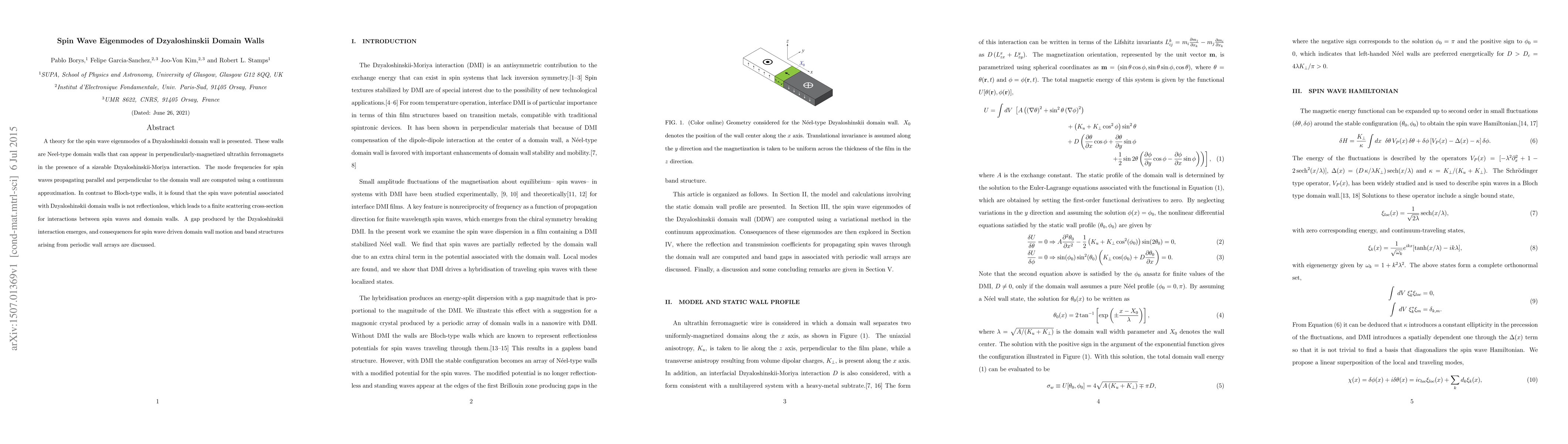 This paper presents a theory for spin wave eigenmodes in Dzyaloshinskii domain walls in ultrathin ferromagnets, revealing that unlike Bloch walls, these walls exhibit a finite scattering cross-section for spin waves. It discusses the implications for domain wall motion driven by spin waves and the emergence of a gap due to the Dzyaloshinskii interaction.