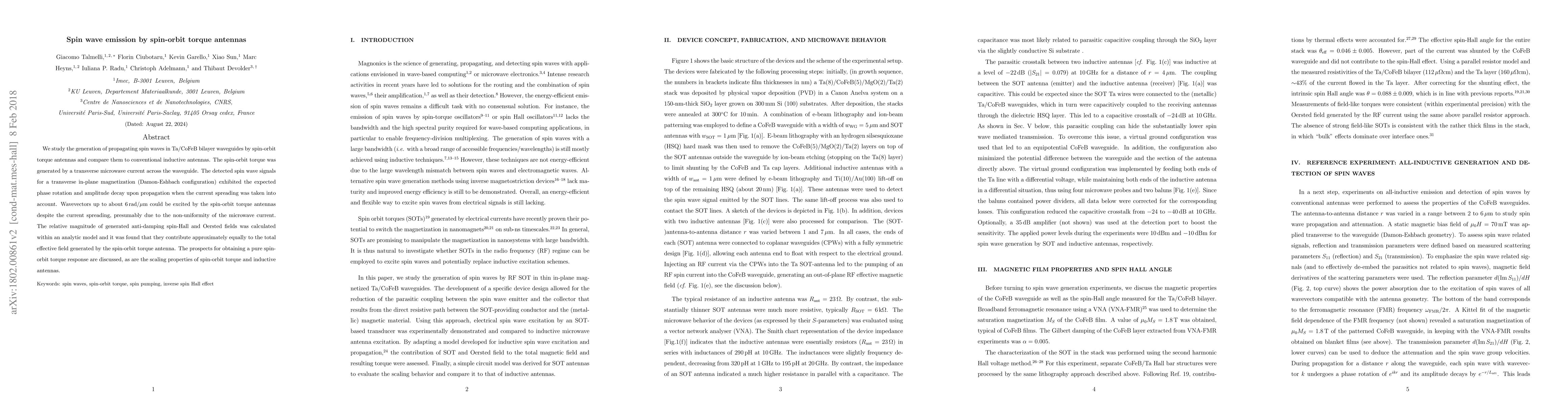 A new method for generating and detecting spin waves using a SOT antenna was developed and demonstrated.