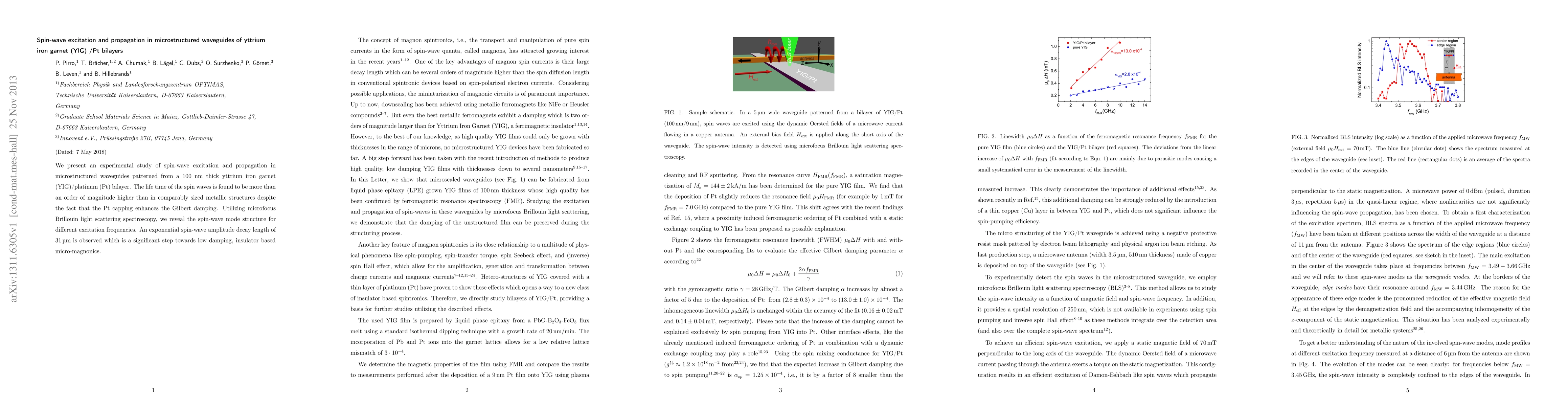 This study experimentally investigates spin-wave excitation and propagation in YIG/Pt bilayer microstructured waveguides, finding spin-wave lifetimes significantly higher than in metallic counterparts despite enhanced damping. The research reveals a 31 μm spin-wave decay length using microfocus Brillouin light scattering, advancing low-damping, insulator-based micro-magnonics.