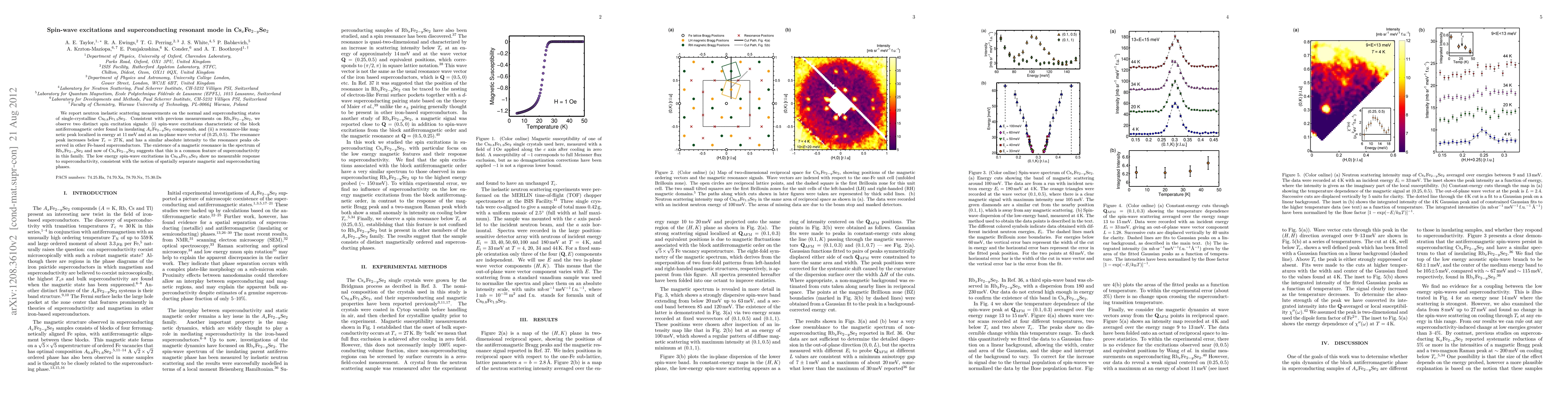 This study investigates spin-wave excitations in Cs0.8Fe1.9Se2 using neutron inelastic scattering, revealing two distinct spin excitations and a superconducting resonant mode at 11 meV. The magnetic resonance peak correlates with superconductivity, suggesting a common feature in this Fe-based superconductor family.