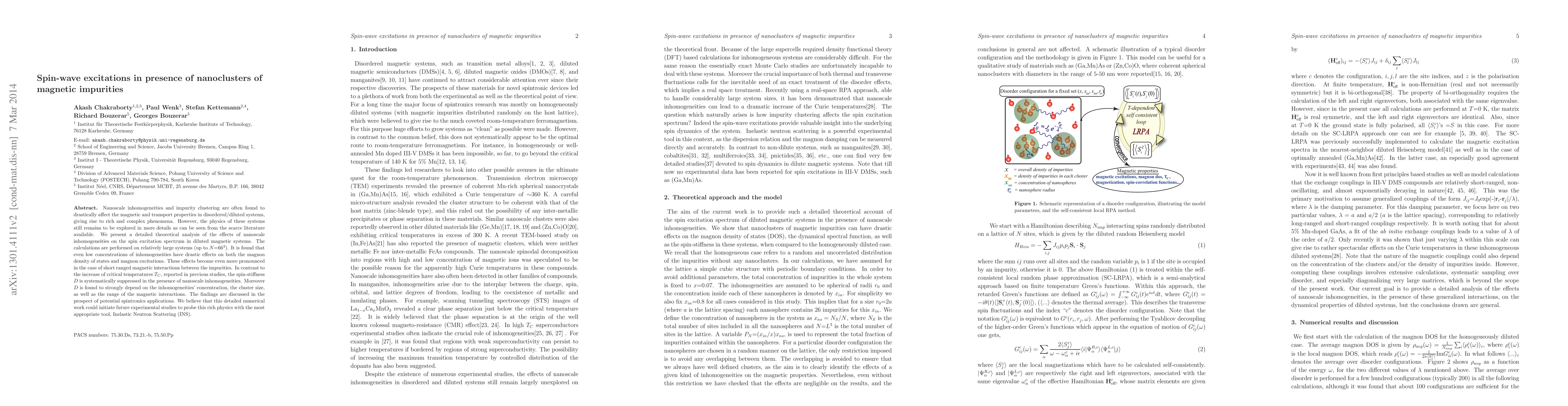 This paper presents a theoretical analysis of how nanoscale magnetic impurities affect spin excitations in diluted magnetic systems, finding significant impacts on the magnon density of states and spin-stiffness, which are influenced by impurity concentration, cluster size, and interaction range. The study suggests potential implications for spintronics and recommends Inelastic Neutron Scattering for future experimental validation.