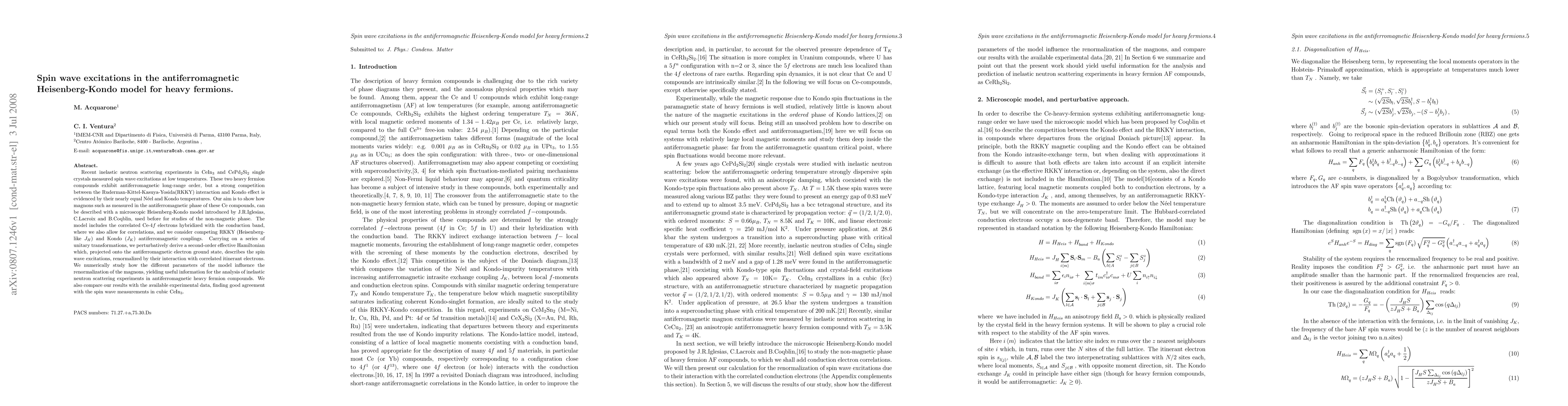 This paper investigates spin wave excitations in antiferromagnetic heavy fermion compounds CeIn$_3$ and CePd$_2$Si$_2$ using a microscopic Heisenberg-Kondo model. The study derives a second-order effective Hamiltonian to describe magnons renormalized by interactions with correlated electrons, and finds good agreement with experimental neutron scattering data for CeIn$_3$.
