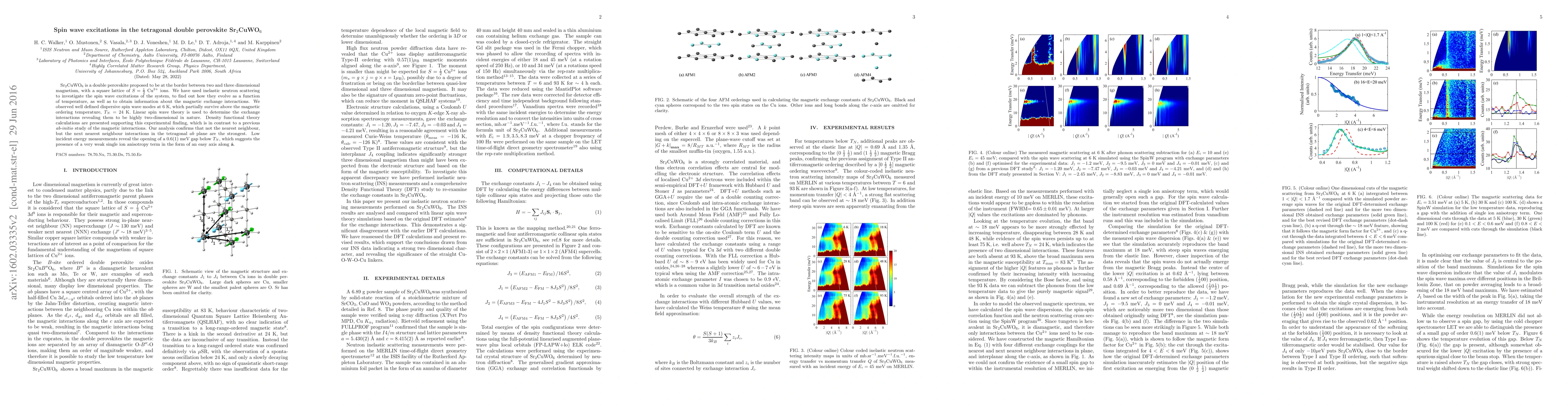 Researchers investigated spin wave excitations in Sr2CuWO6 using inelastic neutron scattering, finding well-defined modes at 6K that survive above the magnetic ordering temperature, revealing highly two-dimensional exchange interactions with strong next-nearest neighbor coupling.