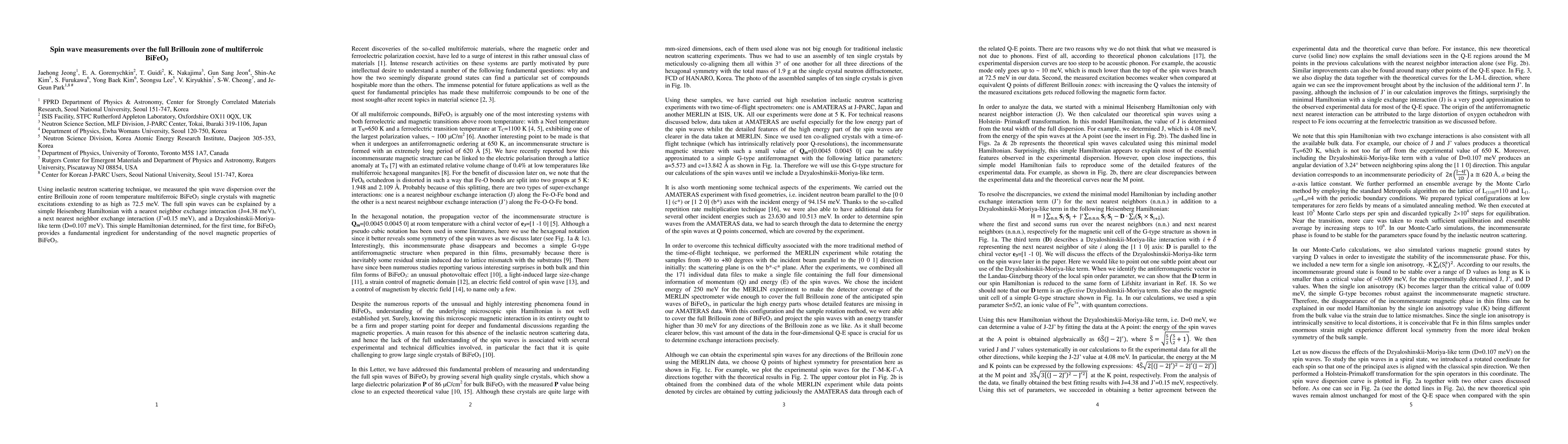 This study employs inelastic neutron scattering to map spin wave dispersion in multiferroic BiFeO3, revealing a simple Heisenberg model describing magnetic interactions, which includes nearest and next-nearest neighbor exchanges and a Dzyaloshinskii-Moriya term. This model is the first for BiFeO3, providing insight into its unique magnetic properties.