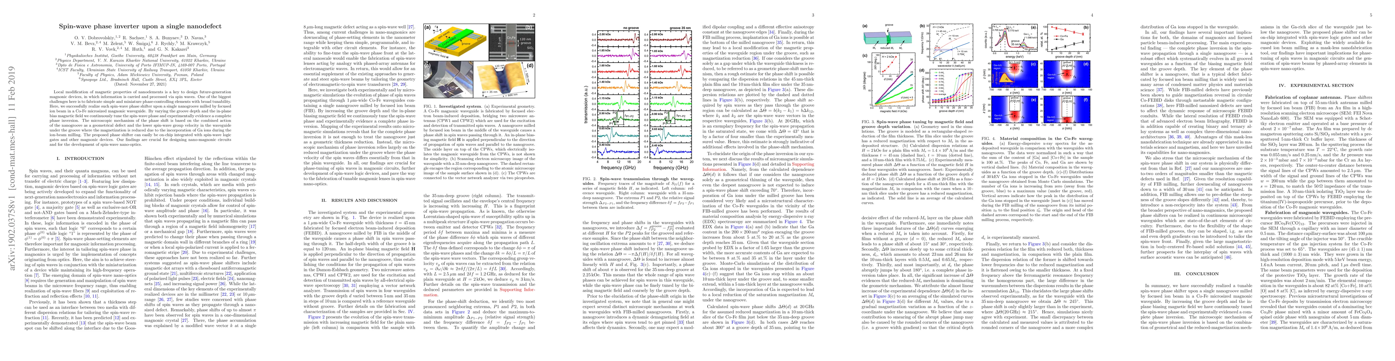 This research paper presents a spin-wave phase shifter utilizing a single nanogroove in a Co-Fe waveguide, demonstrating complete phase inversion by tuning groove depth and magnetic field. The phase shift results from the nanogroove's geometrical effect and reduced magnetization due to Ga ion incorporation during milling, offering potential for integrating with magnonic devices.