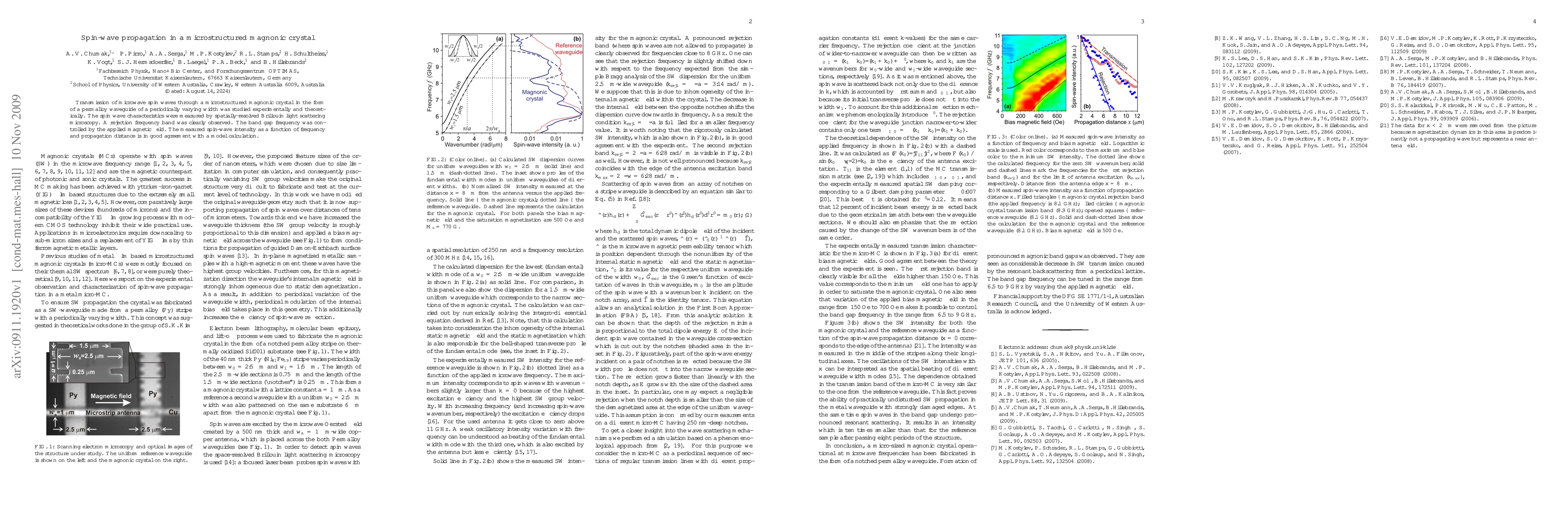 This study experimentally and theoretically investigates spin-wave propagation in a microstructured magnonic crystal, observing a rejection frequency band and controlling the band gap frequency with an applied magnetic field. The findings align well with model calculations based on spatially-resolved Brillouin light scattering microscopy measurements.
