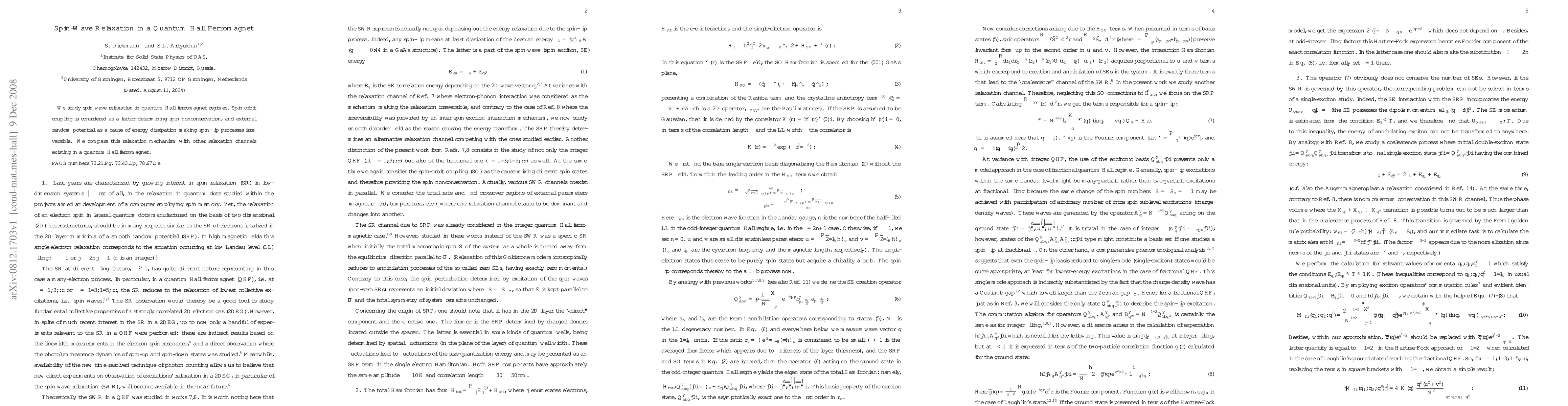 This paper investigates spin wave relaxation in quantum Hall ferromagnets, focusing on spin-orbit coupling as a factor for spin nonconservation and external random potential as a source of irreversible energy dissipation. It compares this relaxation mechanism with other existing relaxation channels in quantum Hall ferromagnets.