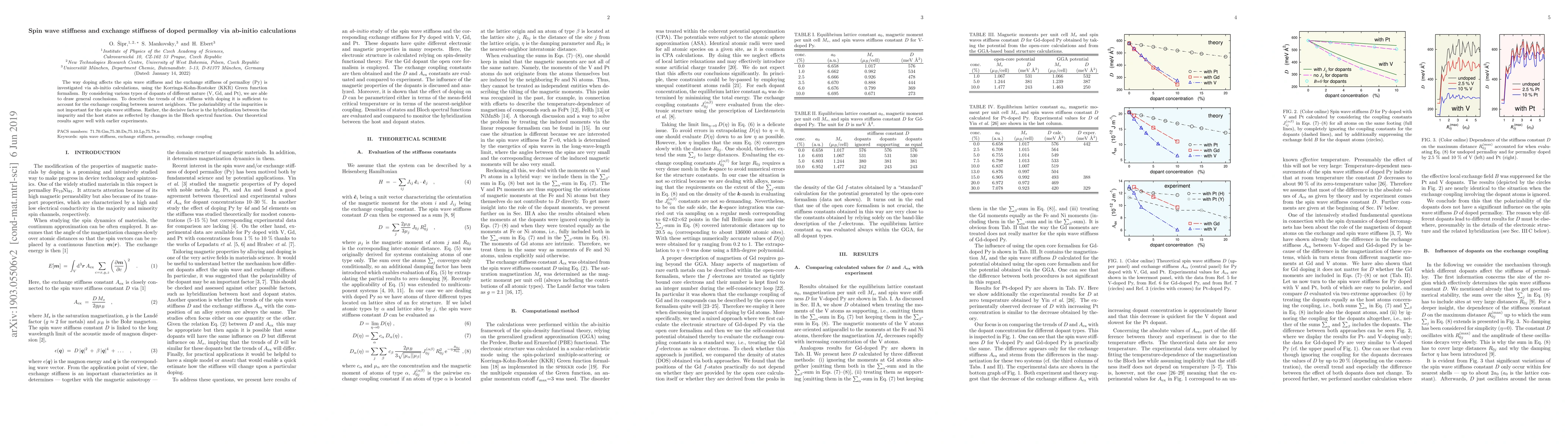 This paper uses ab-initio calculations to investigate how doping affects the spin wave and exchange stiffness in permalloy, finding that the decisive factor is the hybridization between impurity and host states, rather than impurity polarizability. The study's results align well with previous experimental findings.