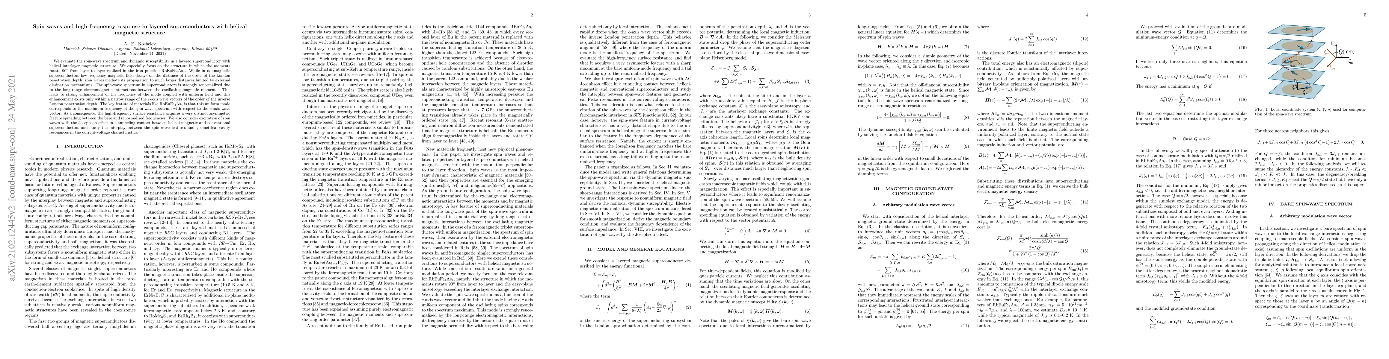 This paper investigates spin-wave dynamics and high-frequency response in layered superconductors with helical magnetic structures, particularly focusing on RbEuFe$_{4}$As$_{4}$. It reveals a strong enhancement in spin-wave frequency due to electromagnetic interactions, leading to distinct asymmetric features in the high-frequency surface resistance.