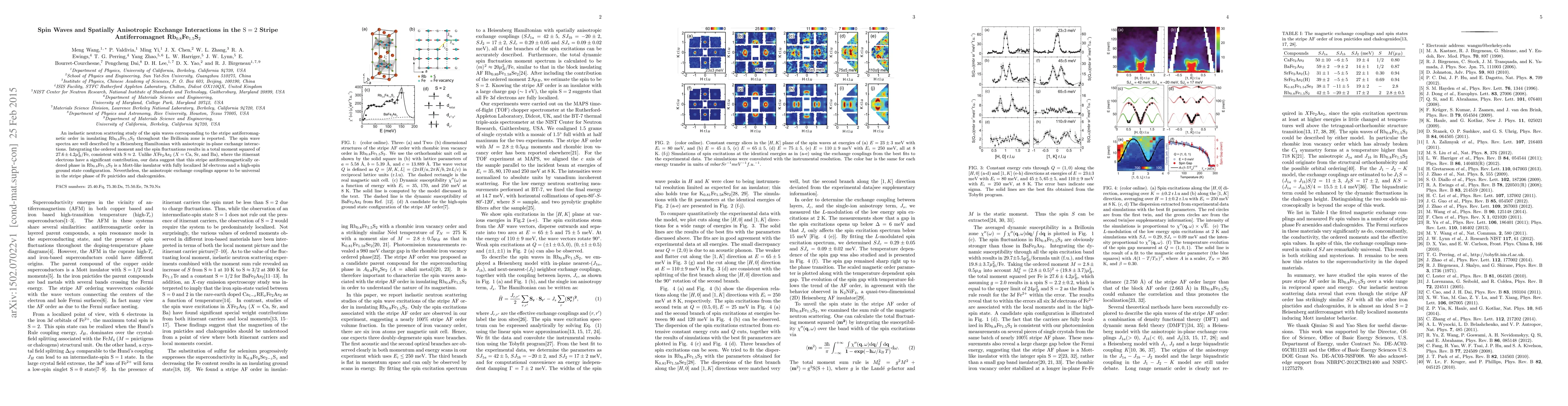 This study investigates spin waves in the $\mathrm{S=2}$ stripe antiferromagnet Rb$_{0.8}$Fe$_{1.5}$S$_2$ using inelastic neutron scattering, revealing anisotropic in-plane exchange interactions and a Mott-like insulating phase with localized $3d$ electrons. The findings suggest universal anisotropic exchange in stripe phases across Fe-based compounds.