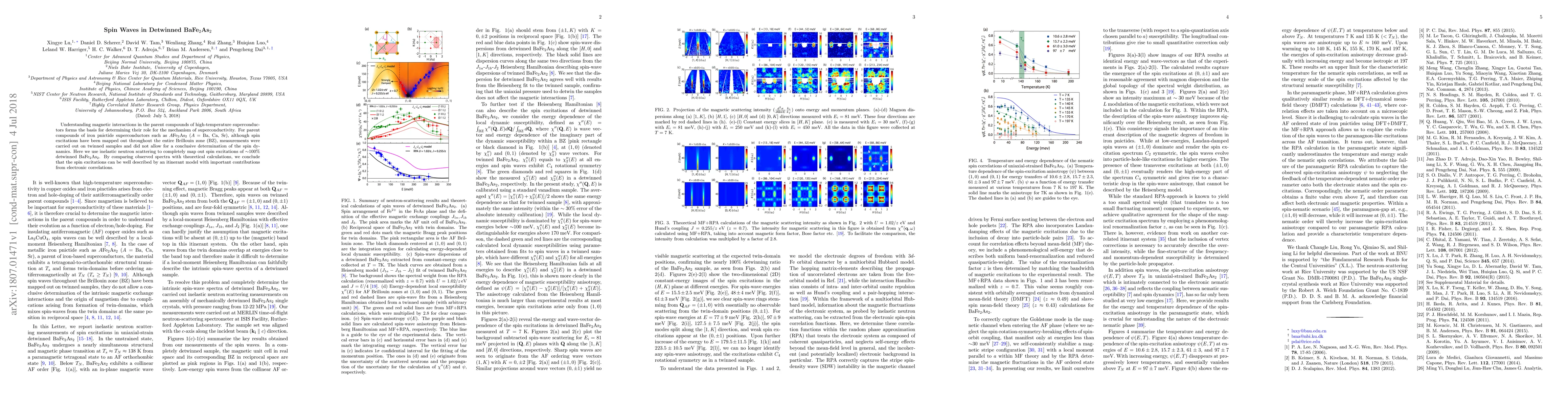 Title: Spin Waves in Detwinned BaFe$_2$As$_2$ Summary: Inelastic neutron scattering on detwinned BaFe$_2$As$_2$ reveals detailed spin excitations, which align with an itinerant electron model emphasizing electronic correlations, offering insights into magnetic interactions in iron pnictide superconductors.