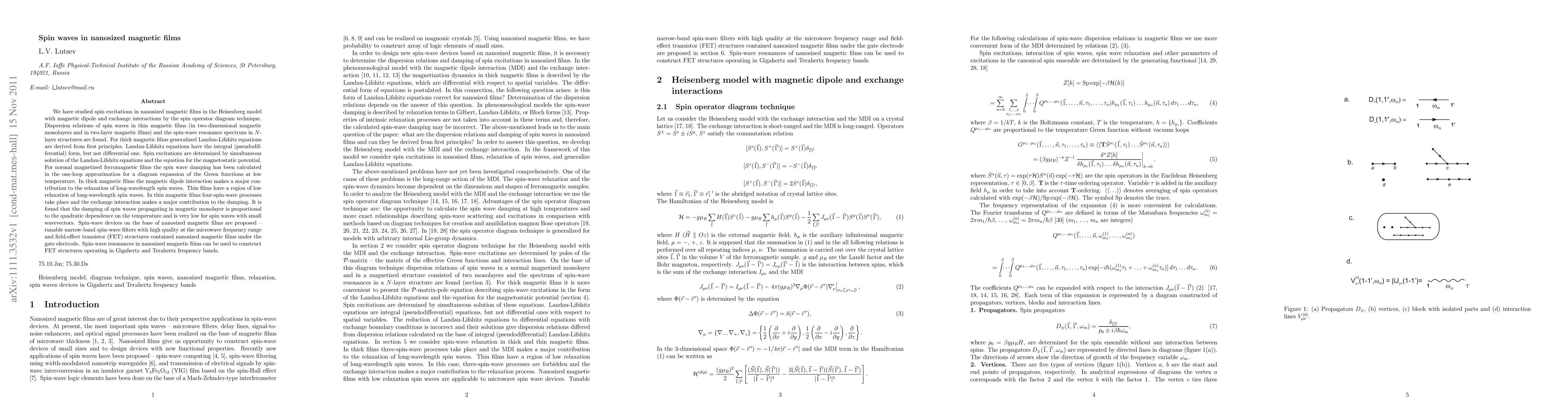 Researchers studied spin waves in nanosized magnetic films using the Heisenberg model and found that spin wave damping varies with film thickness, temperature, and frequency range, enabling applications like narrow-band filters and field-effect transistors.