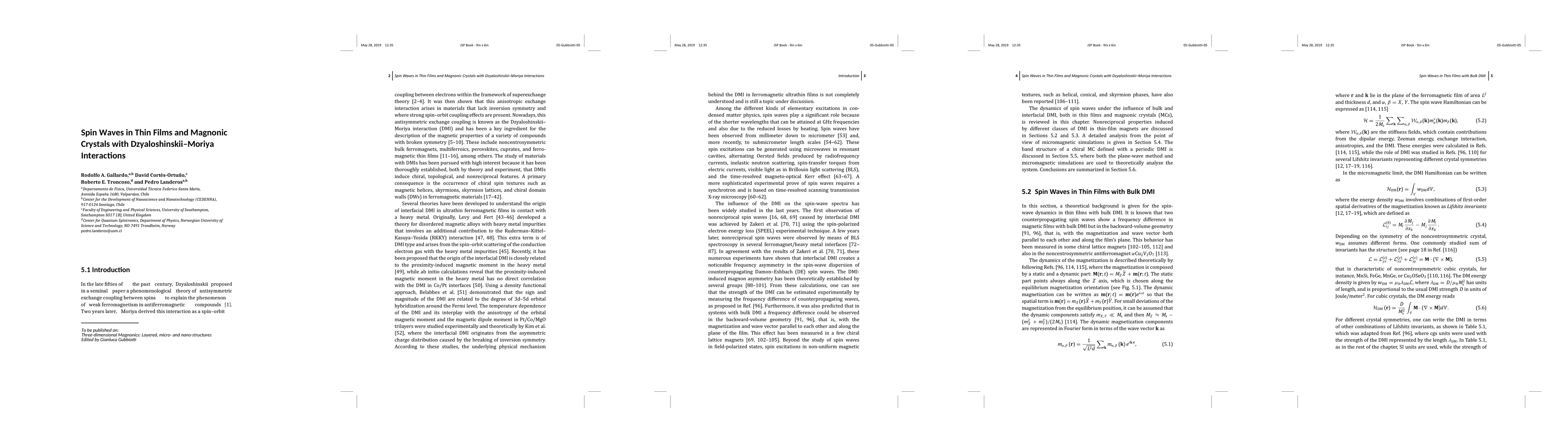 The influence of the Dzyaloshinskii-Moriya interaction in ultra-thin ferromagnetic films and chiral magnonic crystals on the behavior of spin waves is reviewed. During the last decade, it has been shown, both theoretically and experimentally, that this anisotropic exchange interaction produces non-reciprocal features on the spin-wave spectrum of a magnetic system, a phenomenon that occurs both for bulk and interfacial Dzyaloshinskii-Moriya coupling. More recently, the concept of a chiral magnonic crystal has been introduced, where the interfacial Dzyaloshinskii-Moriya interaction is periodic. The effect of this periodicity include additional features such as flat bands, indirect gaps, and an unusual spin-wave evolution.