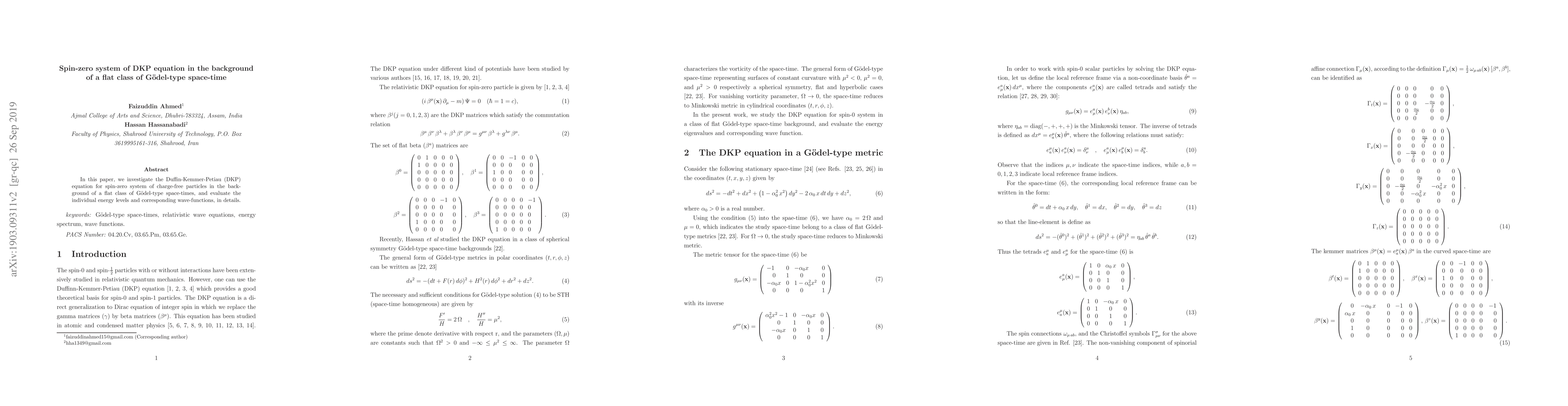 This paper explores the Duffin-Kemmer-Petiau (DKP) equation for spin-zero particles in a flat Gödel-type space-time, evaluating the energy levels and wave-functions of charge-free systems. The study aims to understand the quantum behavior of such particles in this unique space-time geometry.