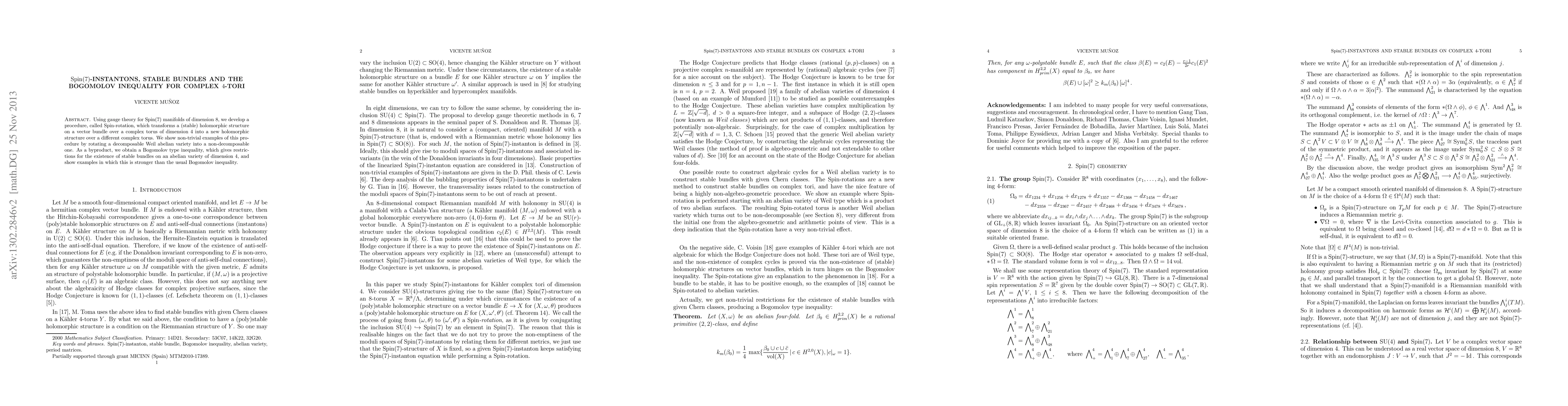 Using gauge theory for Spin(7)-manifolds of dimension 8, we develop a procedure, called Spin-rotation, which transforms a (stable) holomorphic structure on a vector bundle over a complex torus of dimension 4 into a new holomorphic structure over a different complex torus. We show non-trivial examples of this procedure by rotating a decomposable Weil abelian variety into a non-decomposable one. As a byproduct, we obtain a Bogomolov type inequality, which gives restrictions for the existence of stable bundles on an abelian variety of dimension 4, and show examples in which this is stronger than the usual Bogomolov inequality.